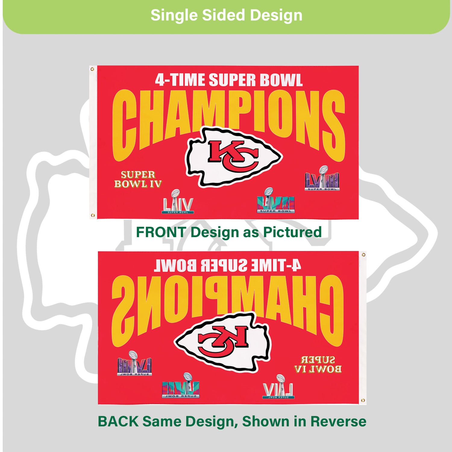 Kansas City Chiefs Multi-Win Superbowl Champions Football 3x5 Flag