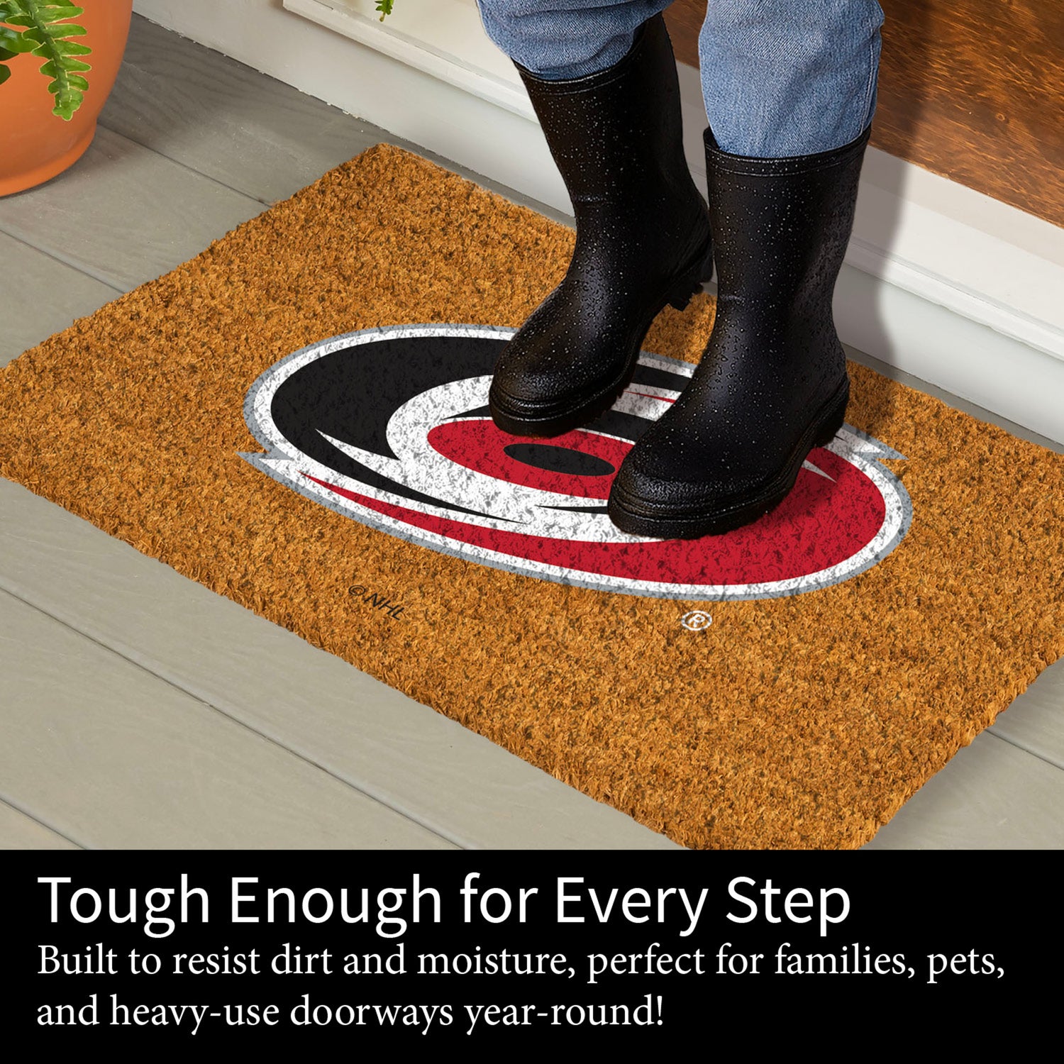 Game day is here! Don't be the only one not showing support. Place this mat in front of the door to welcome friends and family to the home. Sure to incite cheers of fellow fans, it makes the perfect gift for anyone who spends their days checking the score. Crafted from coco husk fiber, the eye-catching mat is natural and eco-friendly. Ideal for high-traffic areas, the mat traps dirt and debris to prevent messes from being tracked into homes. Designs are printed directly on the mats with fade-resistant dyes. Since the mat is crafted from natural coir, some shedding is to be expected. Shake off excess fibers or use a soft brush to gently sweep.