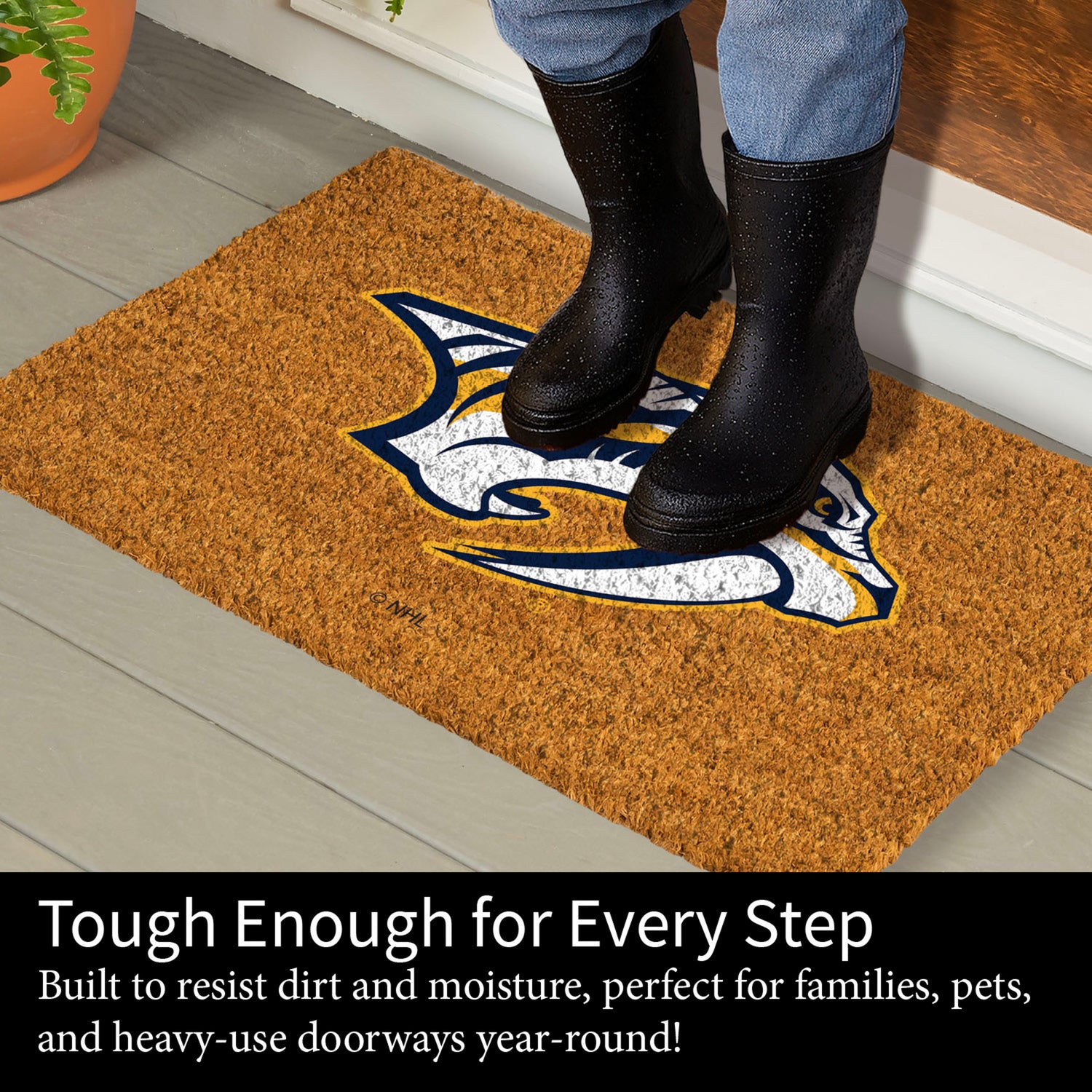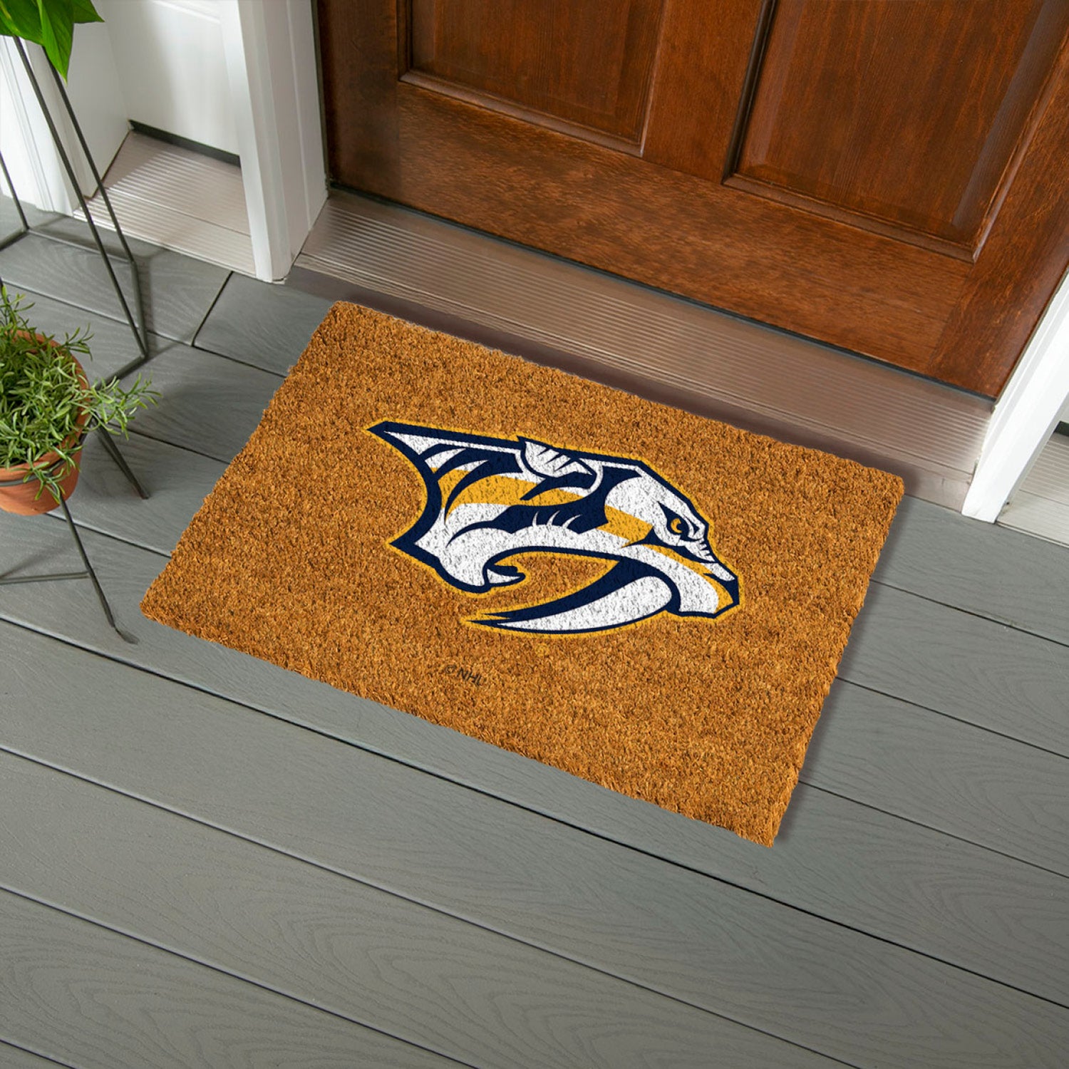 Game day is here! Don't be the only one not showing support. Place this mat in front of the door to welcome friends and family to the home. Sure to incite cheers of fellow fans, it makes the perfect gift for anyone who spends their days checking the score. Crafted from coco husk fiber, the eye-catching mat is natural and eco-friendly. Ideal for high-traffic areas, the mat traps dirt and debris to prevent messes from being tracked into homes. Designs are printed directly on the mats with fade-resistant dyes. Since the mat is crafted from natural coir, some shedding is to be expected. Shake off excess fibers or use a soft brush to gently sweep.