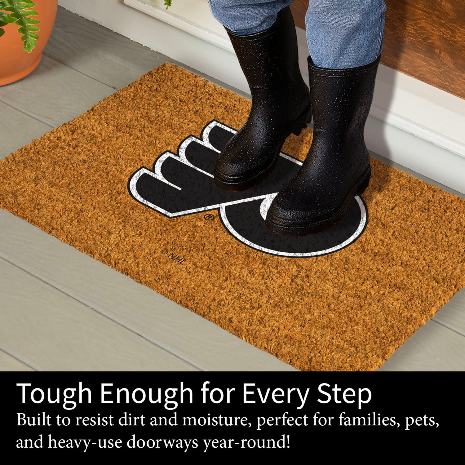 Game day is here! Don't be the only one not showing support. Place this mat in front of the door to welcome friends and family to the home. Sure to incite cheers of fellow fans, it makes the perfect gift for anyone who spends their days checking the score. Crafted from coco husk fiber, the eye-catching mat is natural and eco-friendly. Ideal for high-traffic areas, the mat traps dirt and debris to prevent messes from being tracked into homes. Designs are printed directly on the mats with fade-resistant dyes. Since the mat is crafted from natural coir, some shedding is to be expected. Shake off excess fibers or use a soft brush to gently sweep.