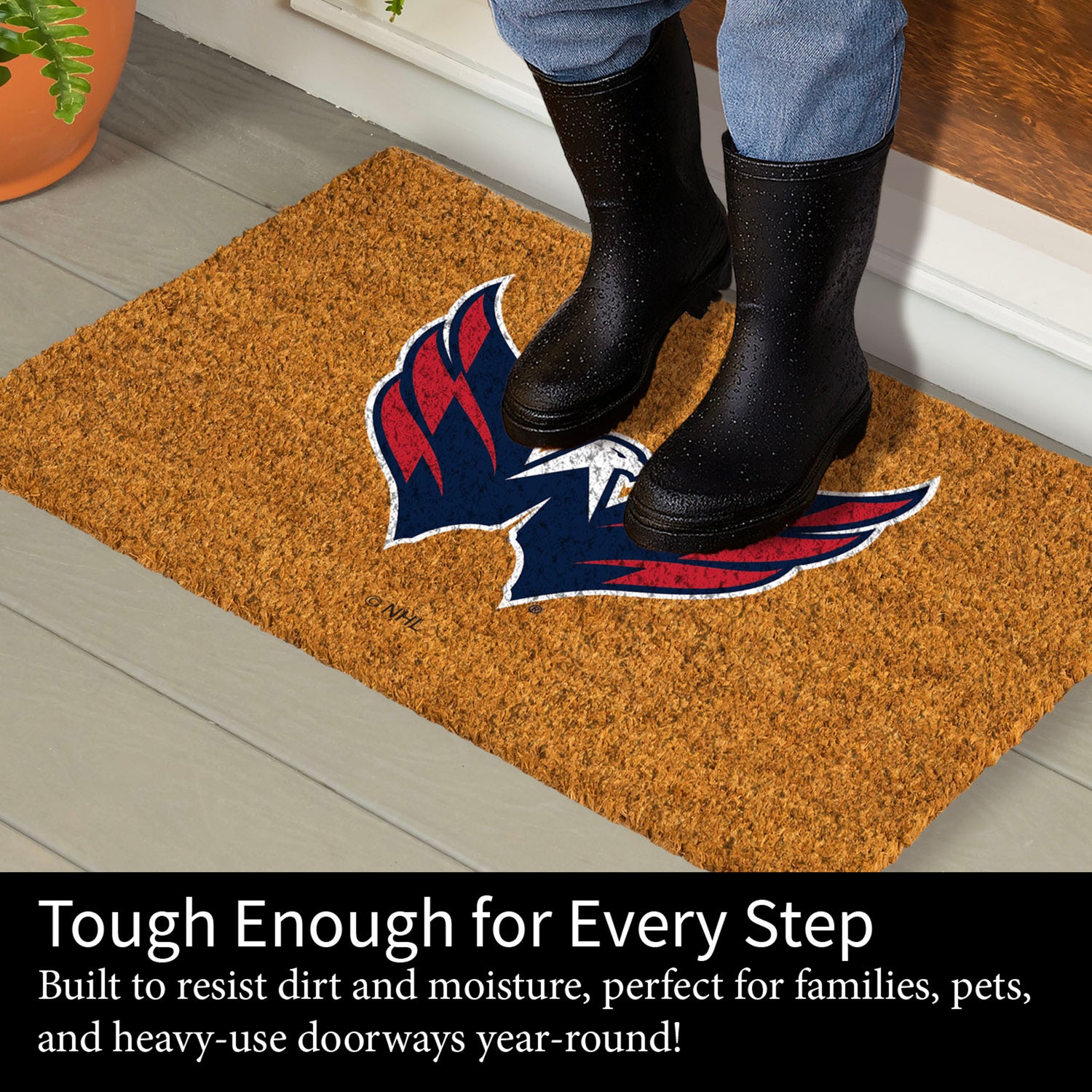 Game day is here! Don't be the only one not showing support. Place this mat in front of the door to welcome friends and family to the home. Sure to incite cheers of fellow fans, it makes the perfect gift for anyone who spends their days checking the score. Crafted from coco husk fiber, the eye-catching mat is natural and eco-friendly. Ideal for high-traffic areas, the mat traps dirt and debris to prevent messes from being tracked into homes. Designs are printed directly on the mats with fade-resistant dyes. Since the mat is crafted from natural coir, some shedding is to be expected. Shake off excess fibers or use a soft brush to gently sweep.