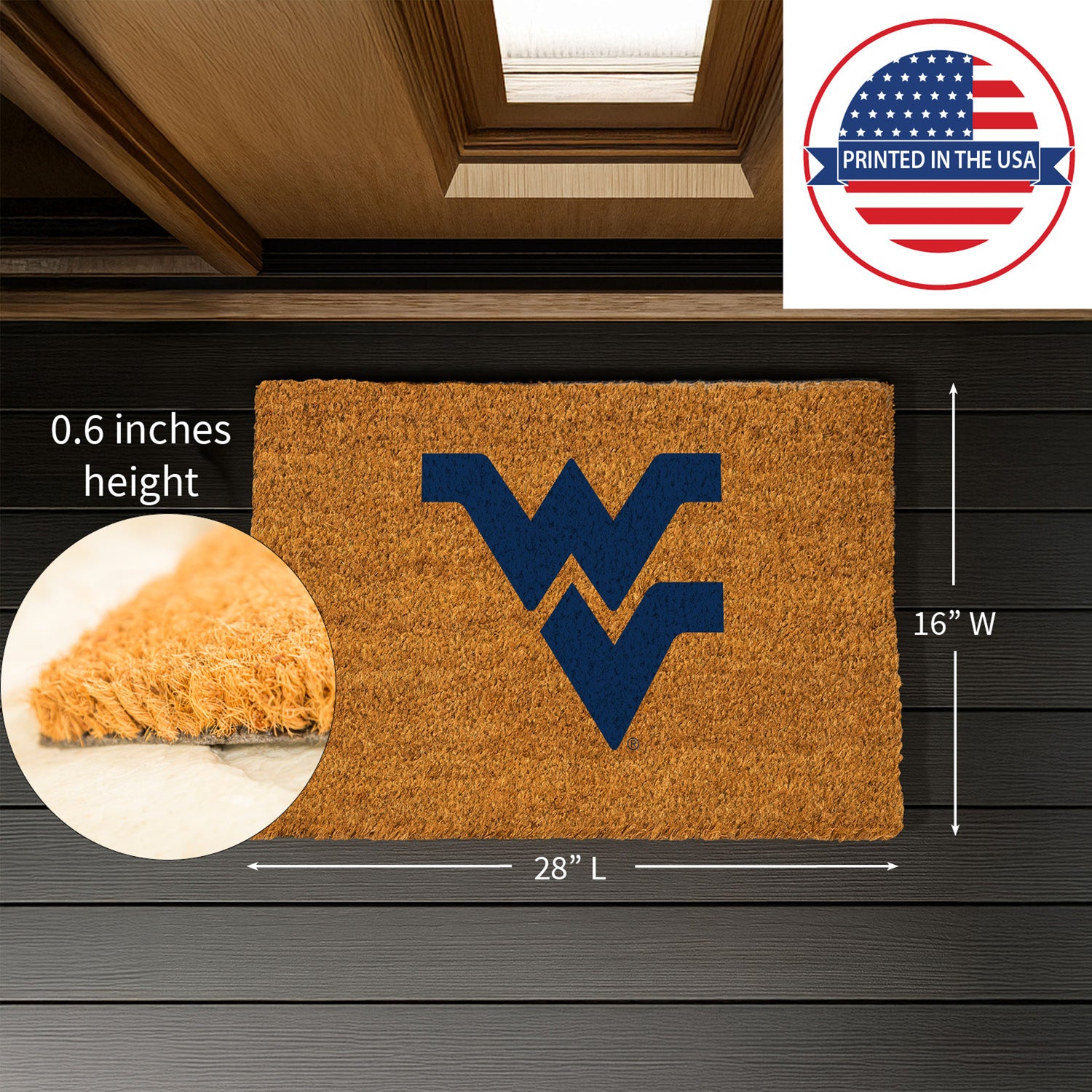 Coir Mat, 16"x28", West Virginia University