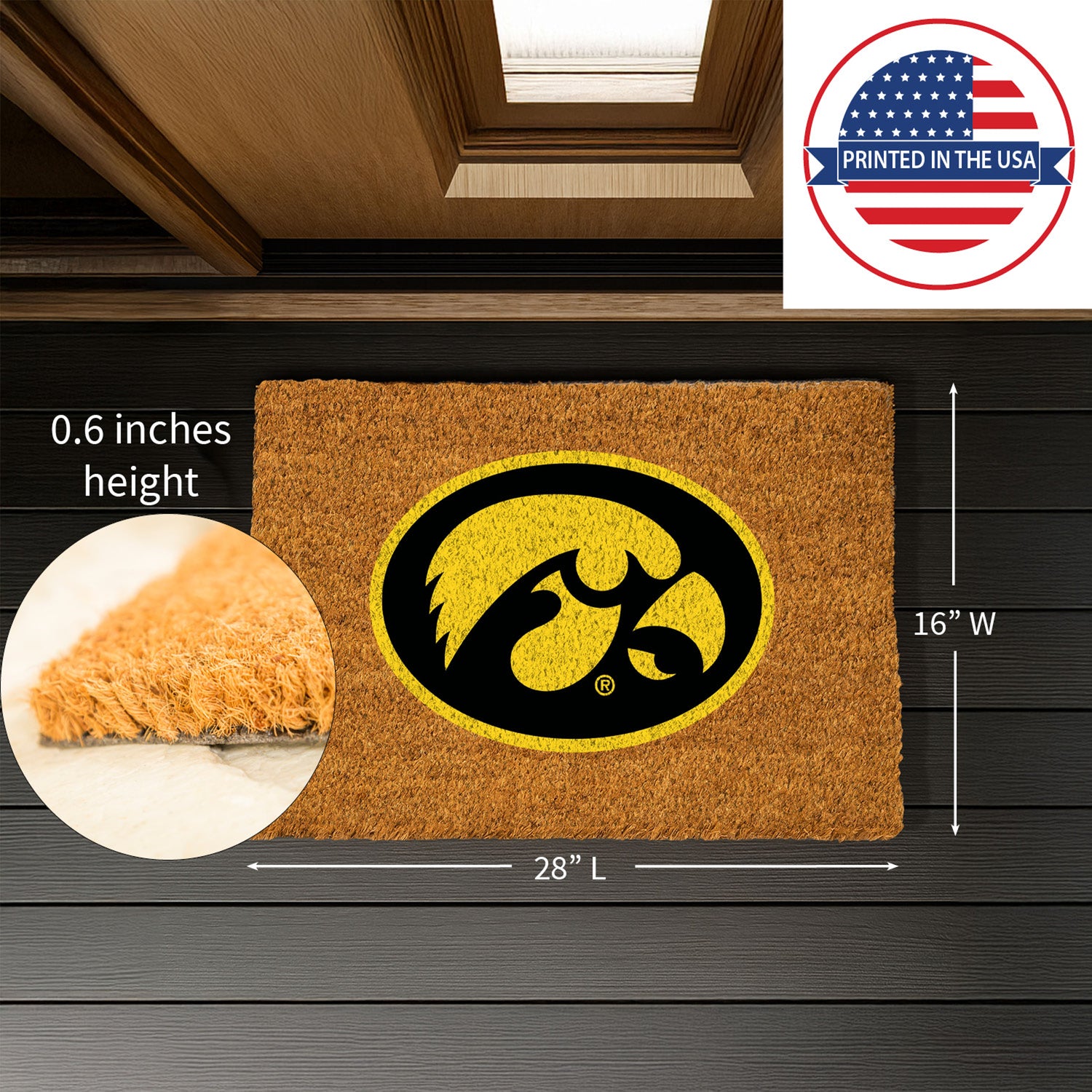Coir Mat, 16"x28", University of Iowa