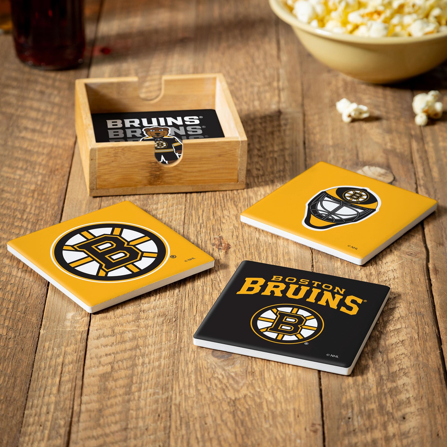 Boston Bruins Ceramic Coasters Set, 4pcs with Wood Caddy
