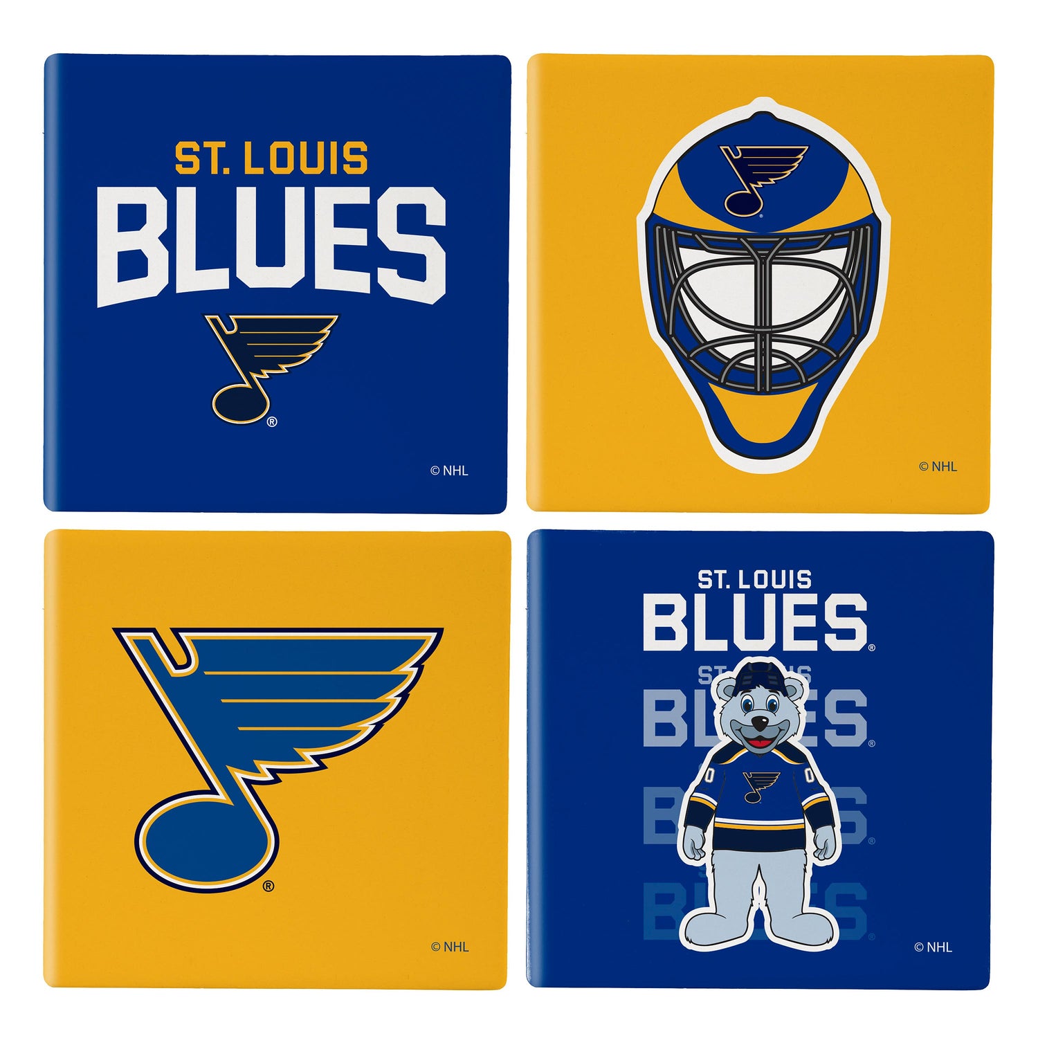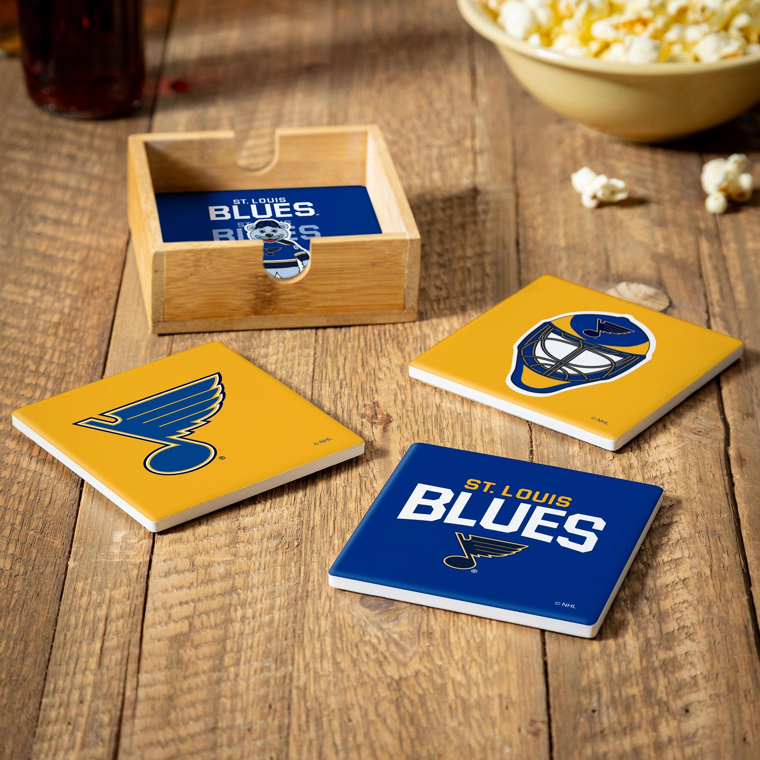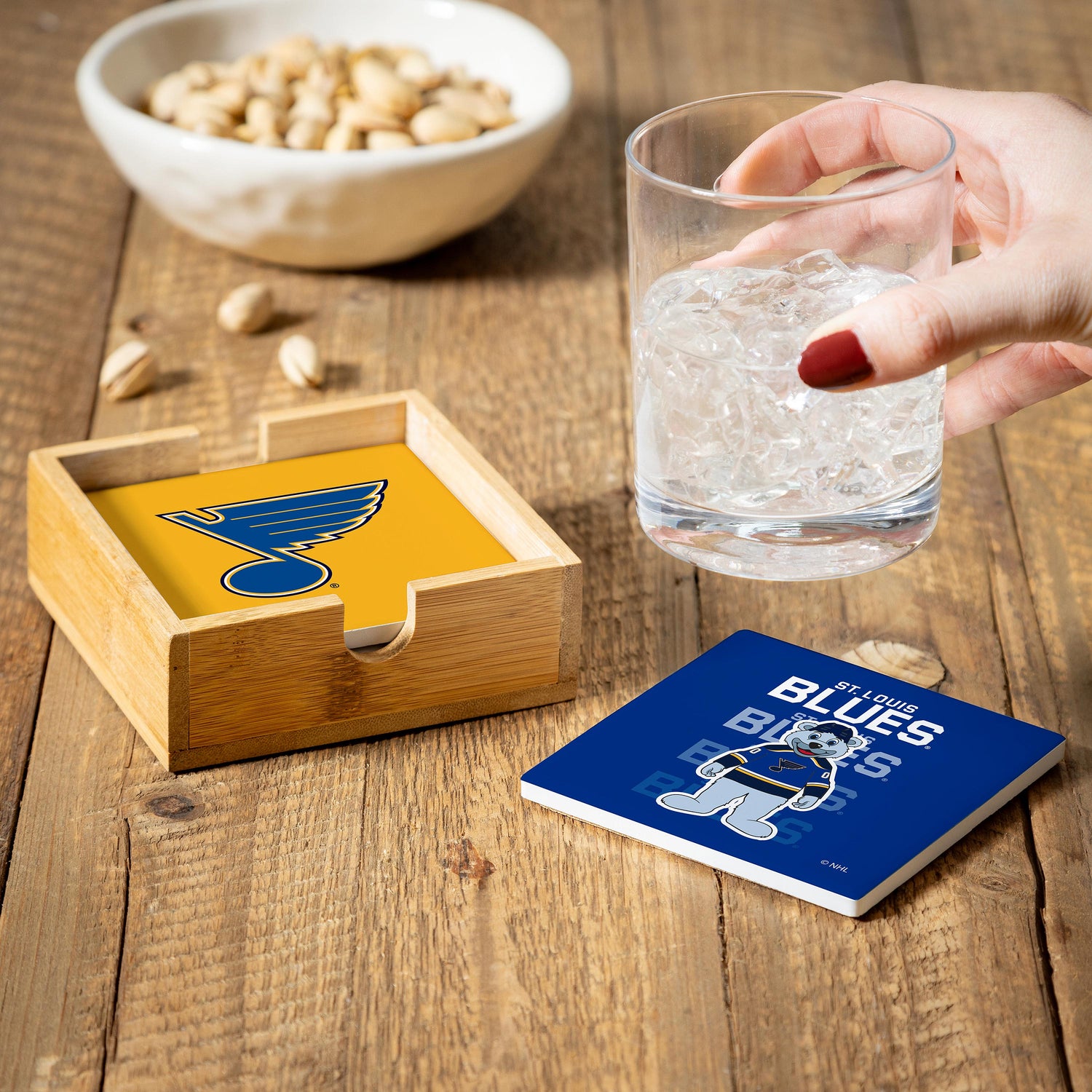St Louis Blues Ceramic Coasters Set, 4pcs with Wood Caddy