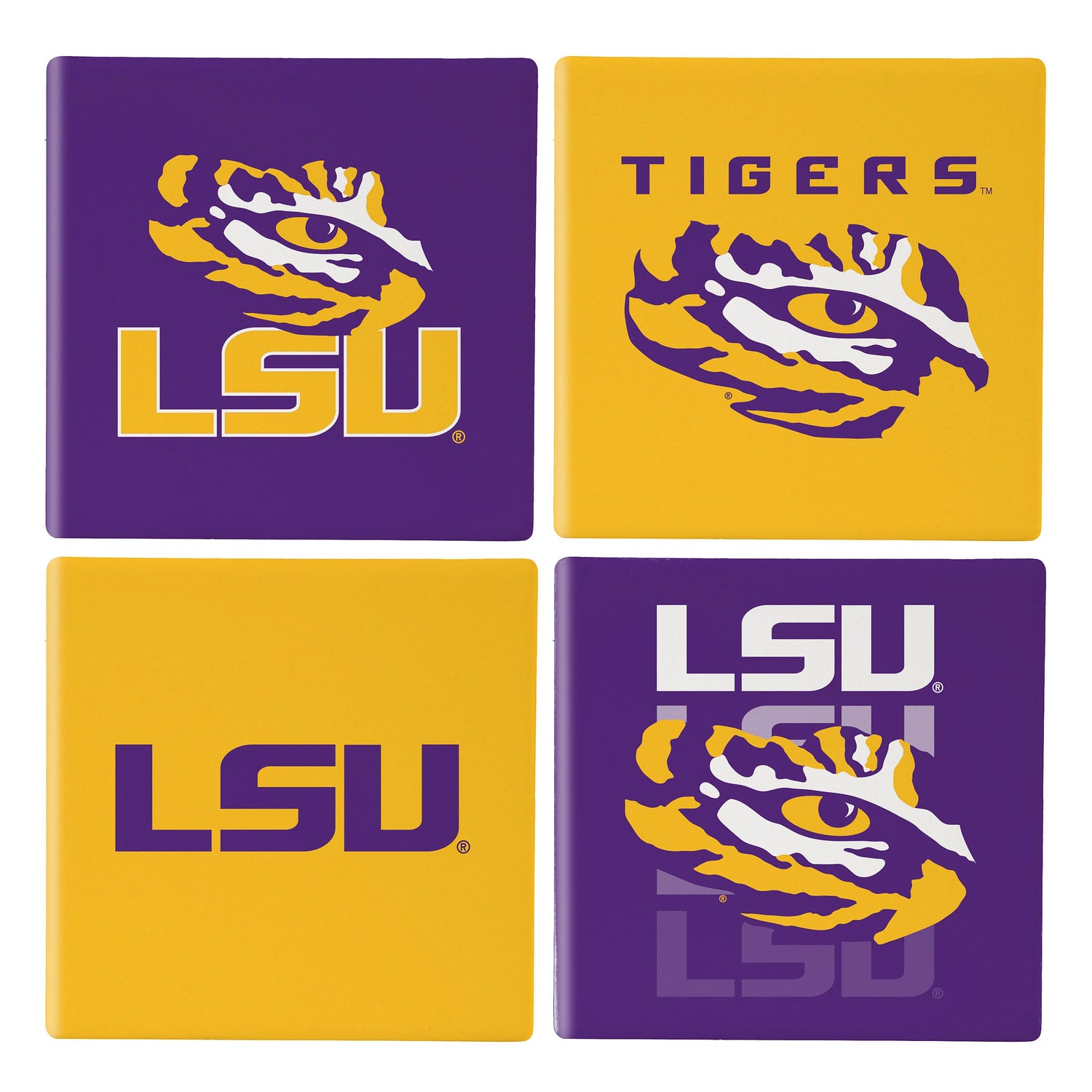 Louisiana State University Ceramic Coasters Set, 4pcs with Wood Caddy