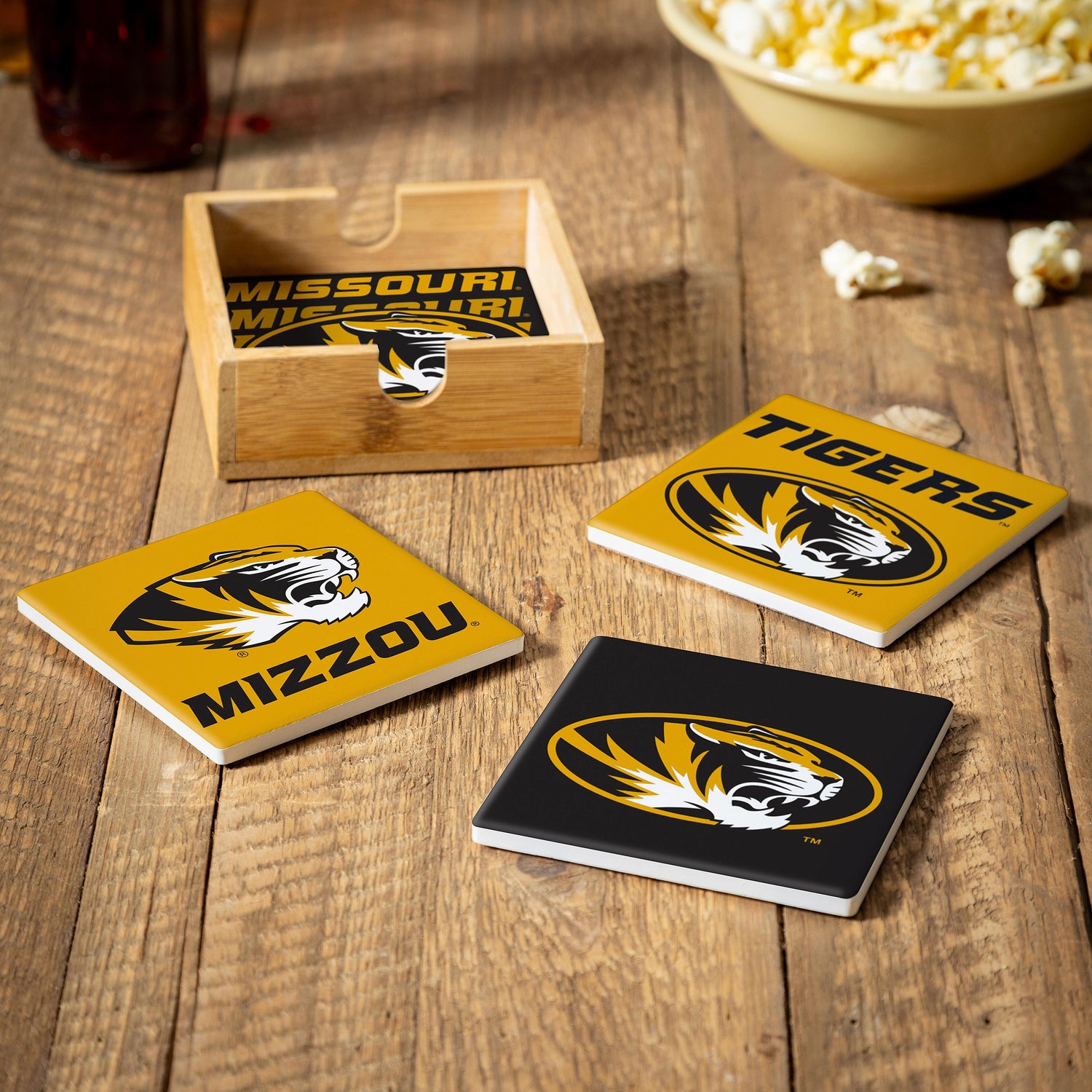University of Missouri Ceramic Coasters Set, 4pcs with Wood Caddy