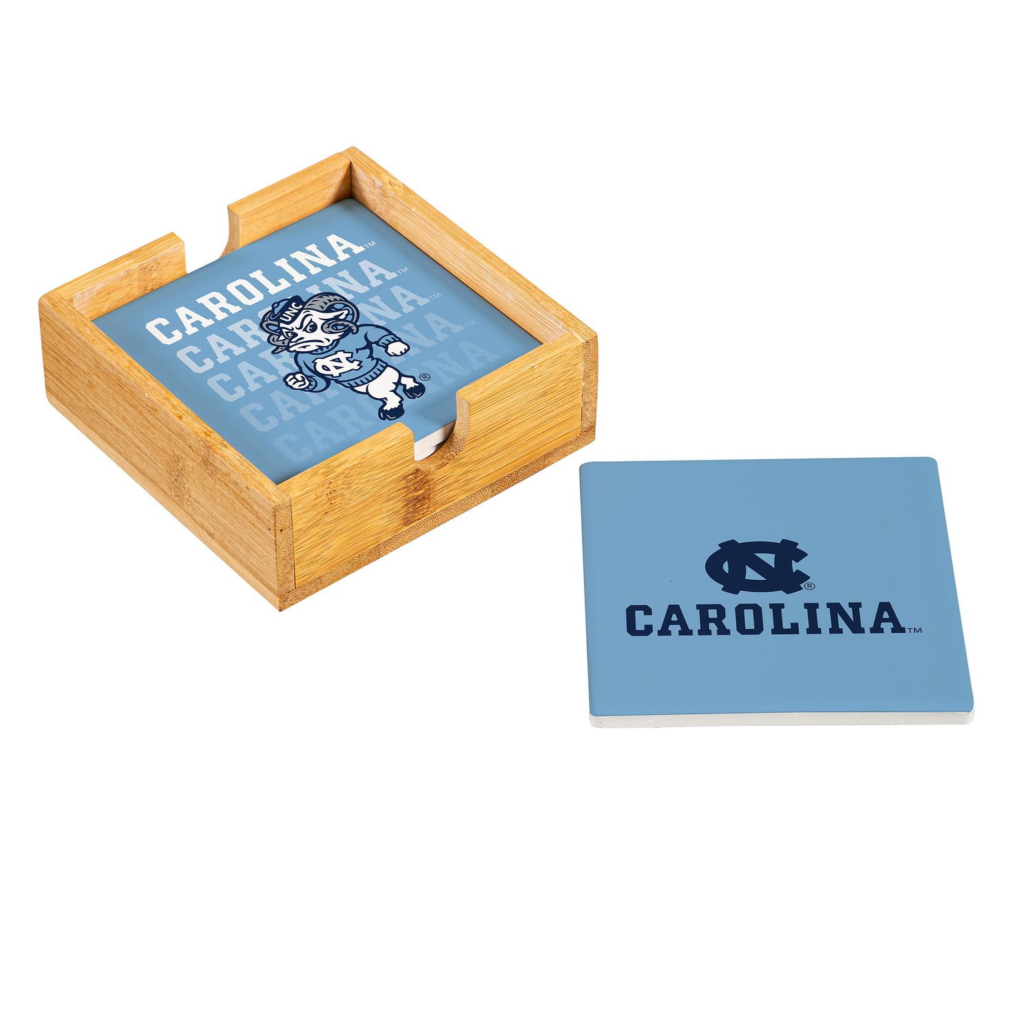 University of North Carolina Ceramic Coasters Set, 4pcs with Wood Caddy