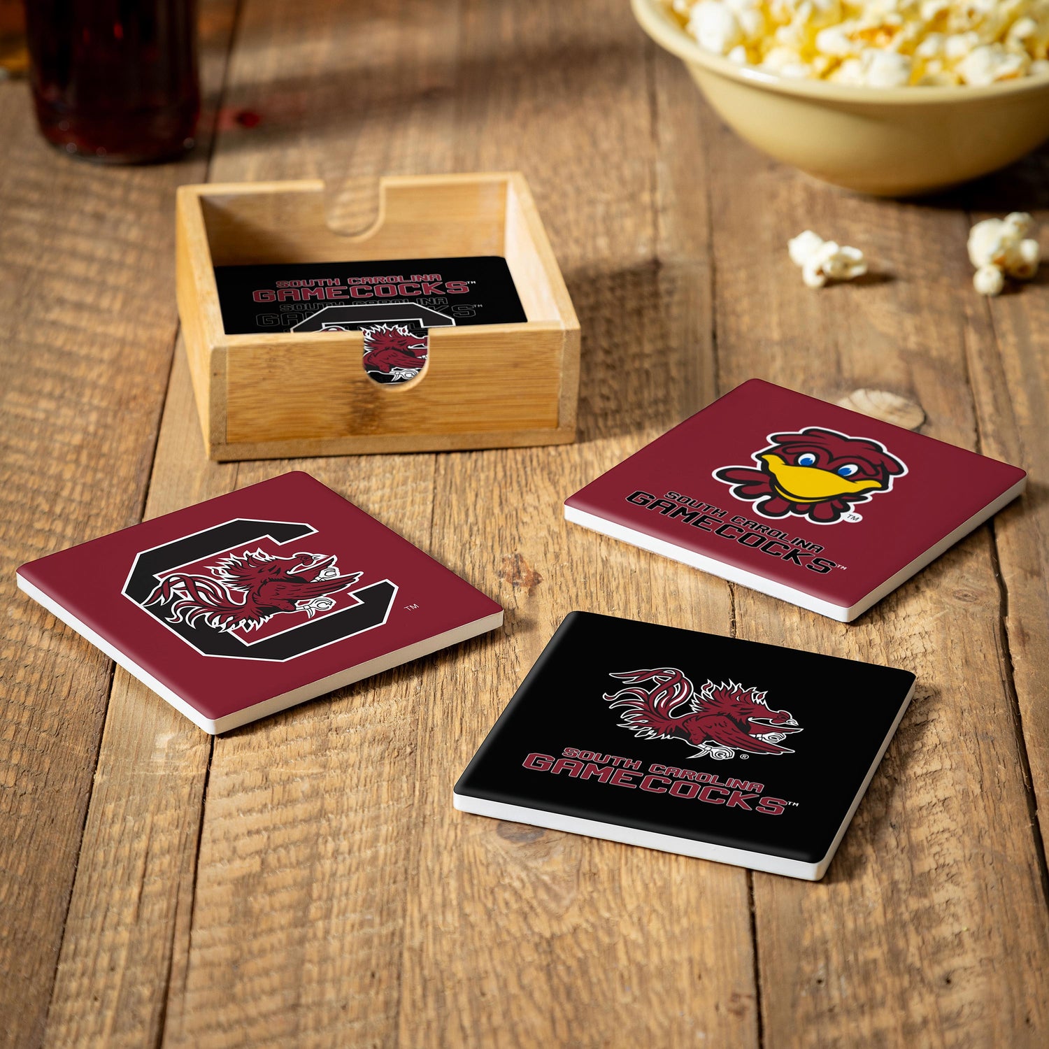 University of South Carolina Ceramic Coasters Set, 4pcs with Wood Caddy