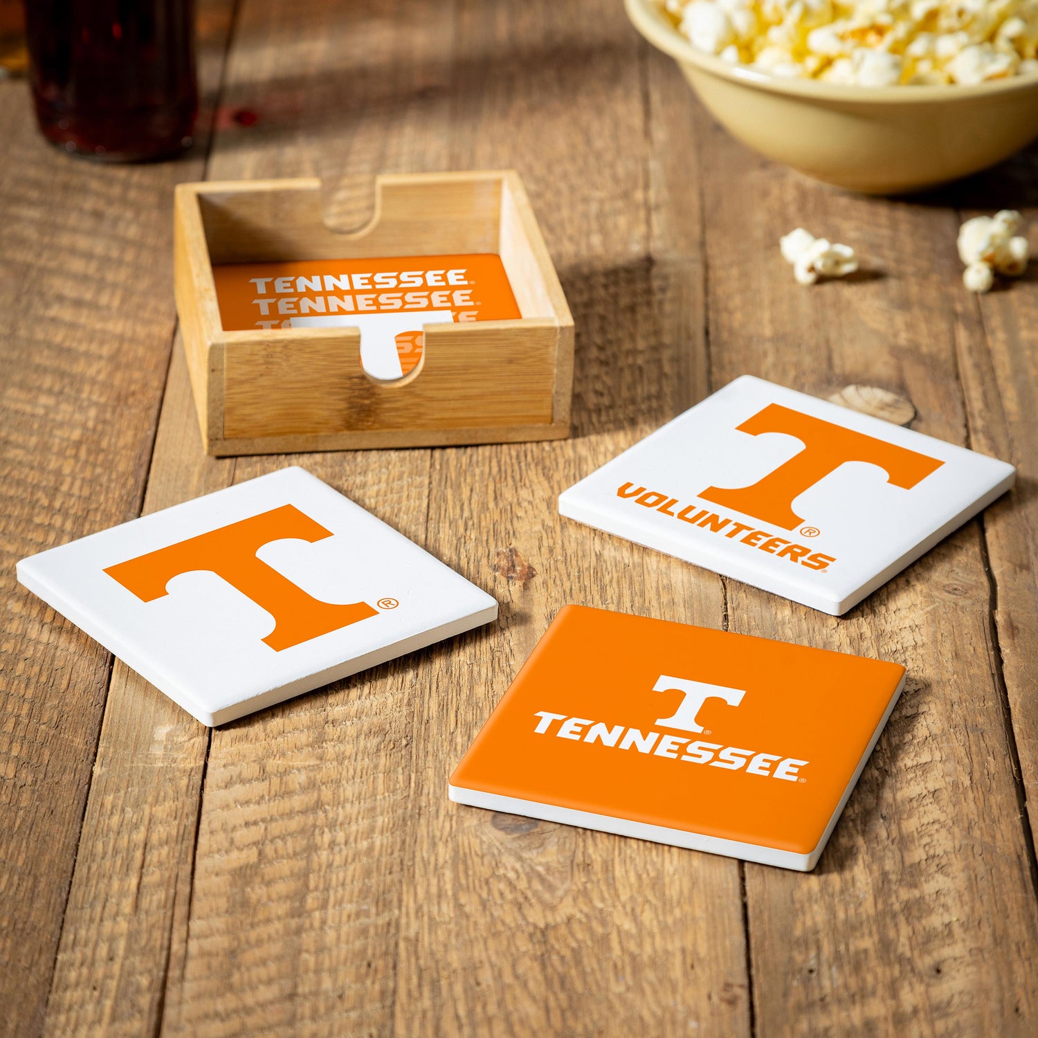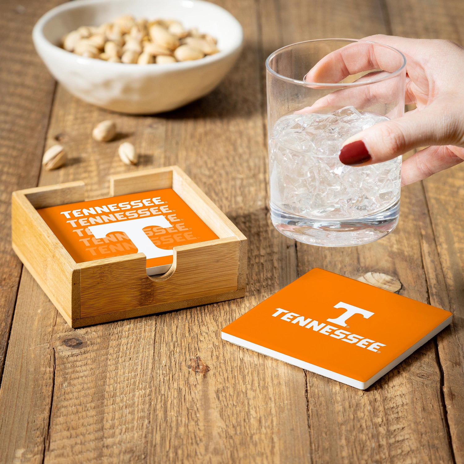 University of Tennessee Ceramic Coasters Set, 4pcs with Wood Caddy