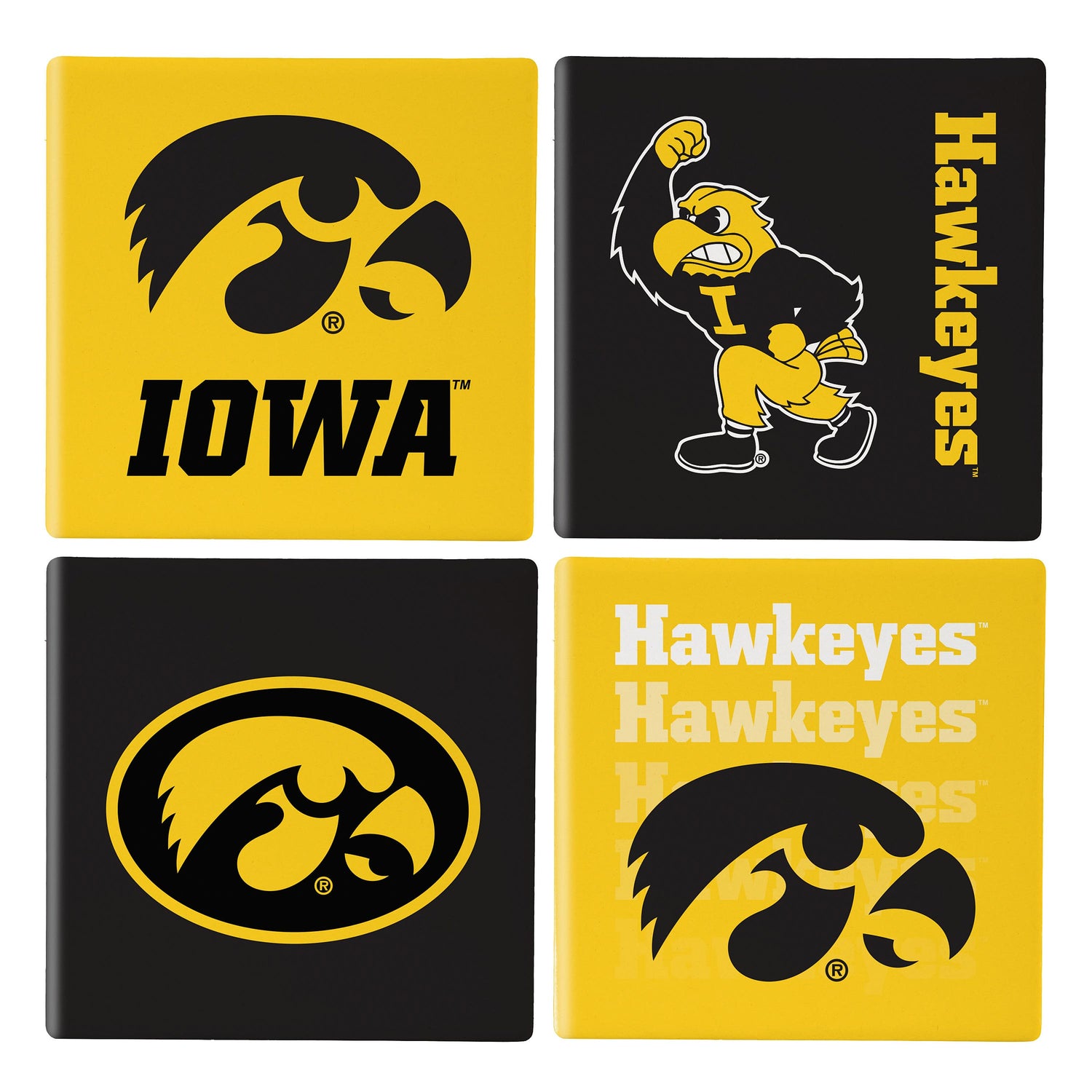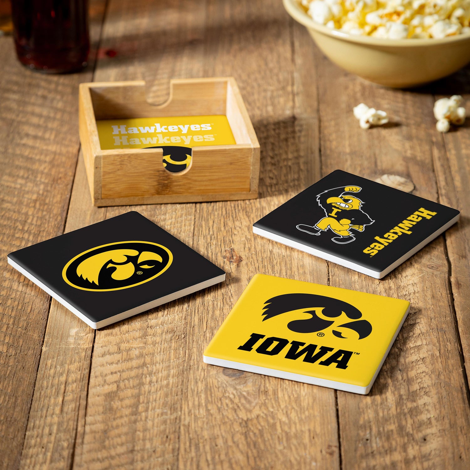 University of Iowa Ceramic Coasters Set, 4pcs with Wood Caddy