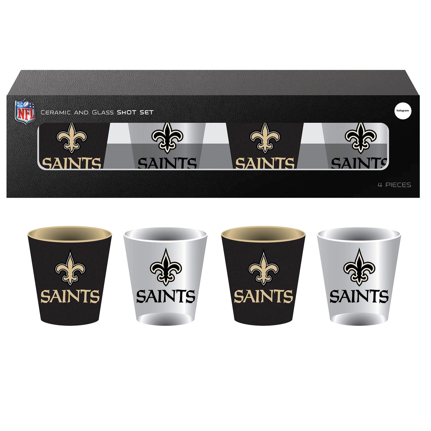New Orleans Saints 4-Piece Ceramic and Glass 2oz. Shot Glass Set