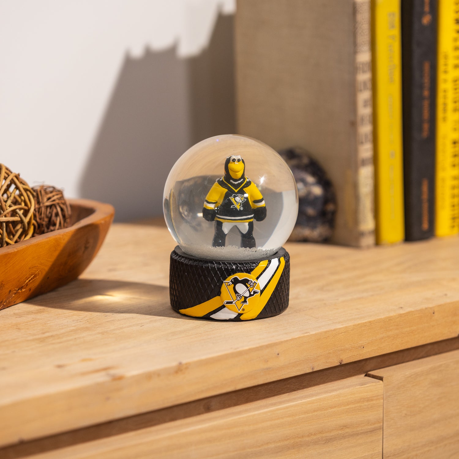 Shake up some game day magic with this whimsical snow globe. Step into a miniature wonderland where swirling snowflakes dance around a charming scene. This globe features the team mascot and colors. Perfect as a festive decoration or a delightful gift for a collector, this water globe brings joy and wonder to all who see it.