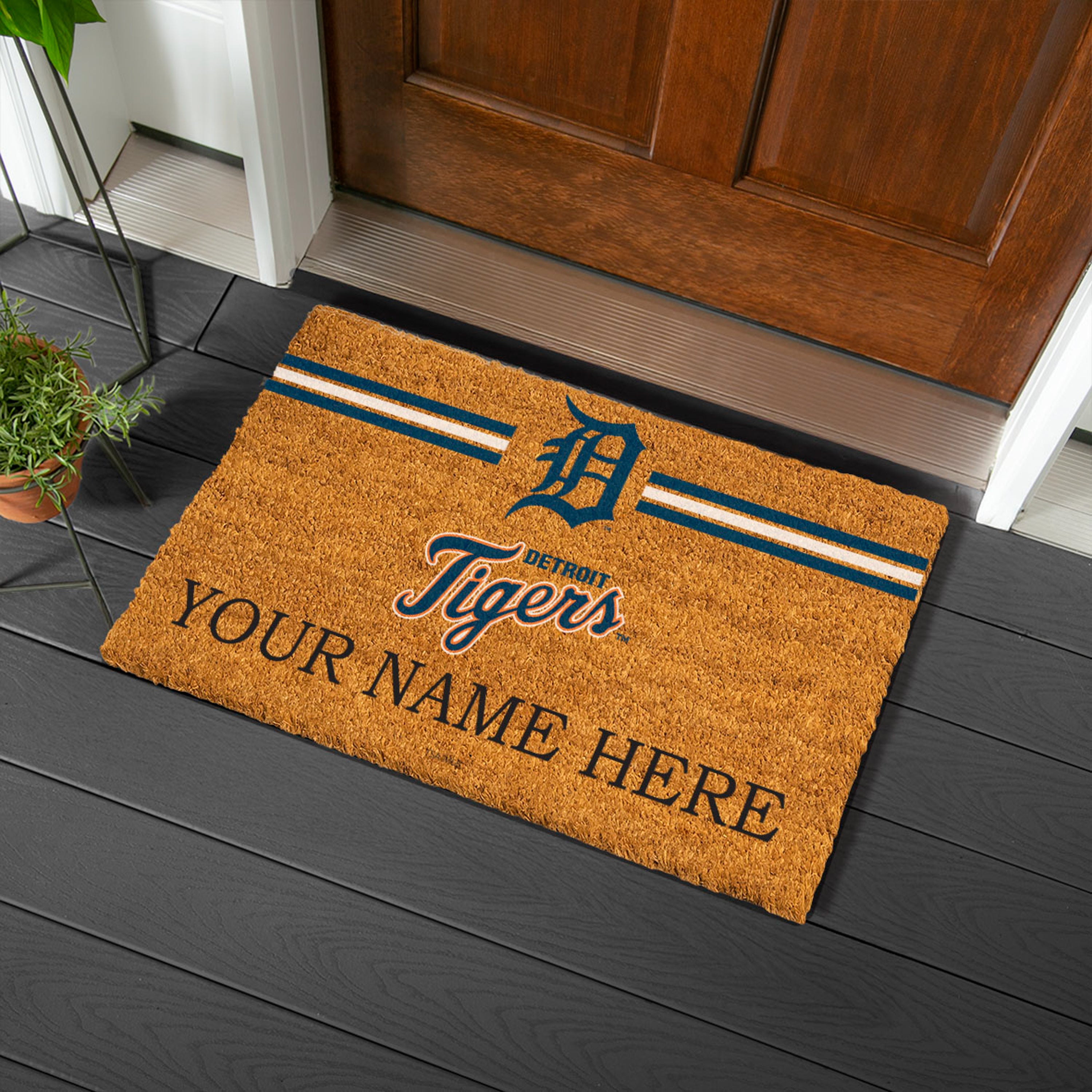 Detroit Tigers Personalized Mat, Natural Coir with Color Logo, 30" x 18"