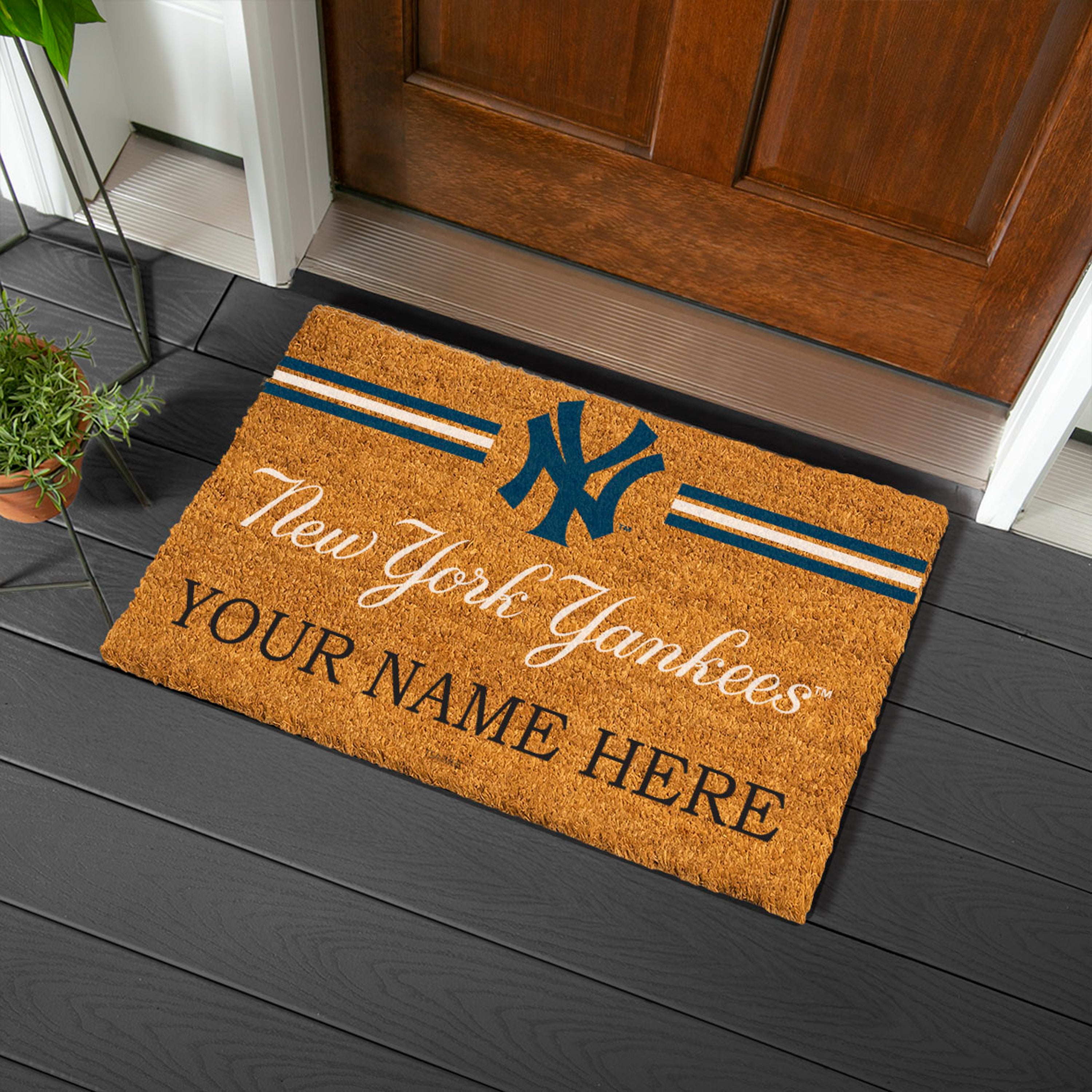 NY Yankees Personalized Mat, Natural Coir with Color Logo, 30" x 18"