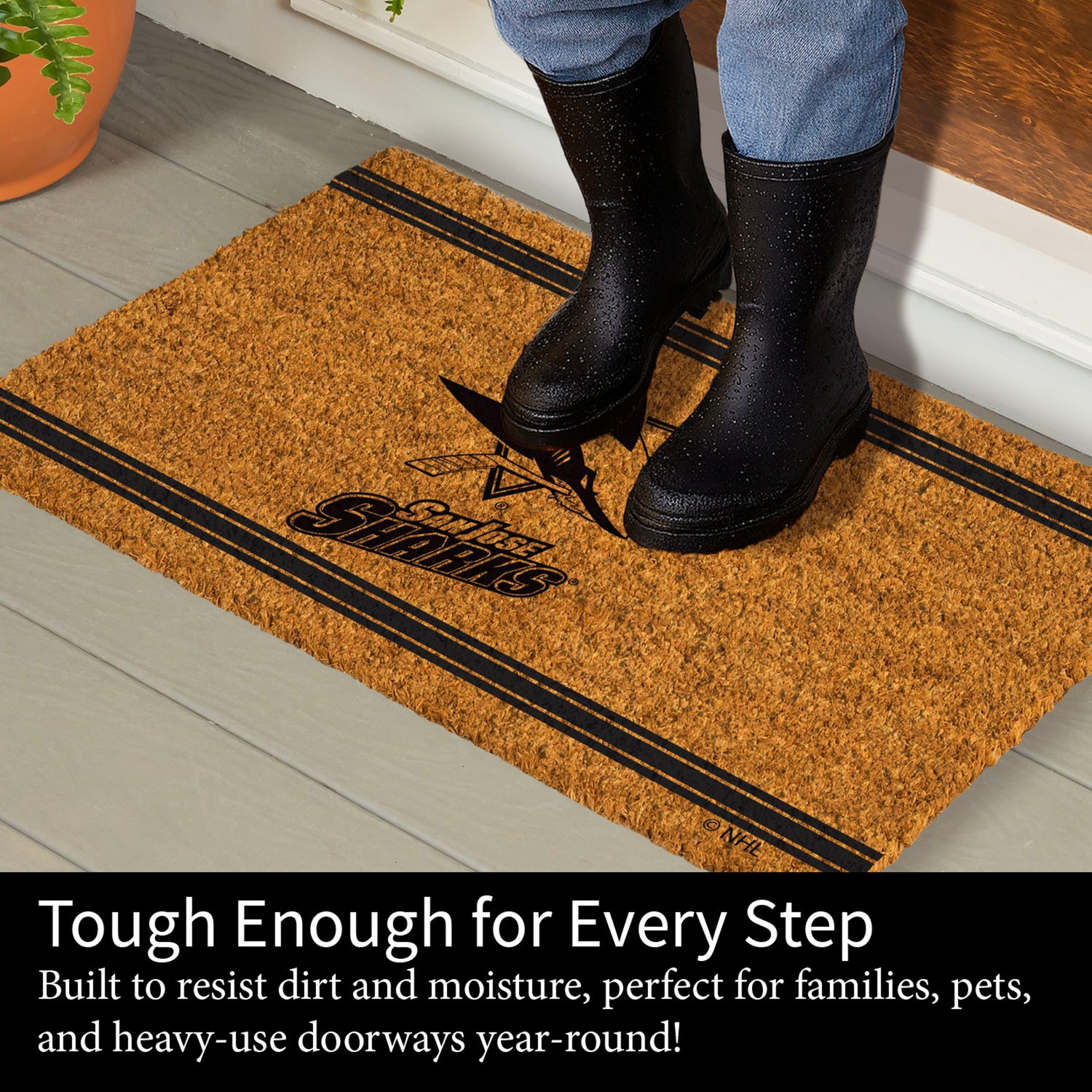 Game day is here! Don't be the only one not showing support. Place this mat in front of the door to welcome friends and family to the home. Sure to incite cheers of fellow fans, it makes the perfect gift for anyone who spends their days checking the score. Crafted from coco husk fiber, the eye-catching mat is natural and eco-friendly. Ideal for high-traffic areas, the mat traps dirt and debris to prevent messes from being tracked into homes. Designs are printed directly on the mats with fade-resistant dyes. Since the mat is crafted from natural coir, some shedding is to be expected. Shake off excess fibers or use a soft brush to gently sweep.