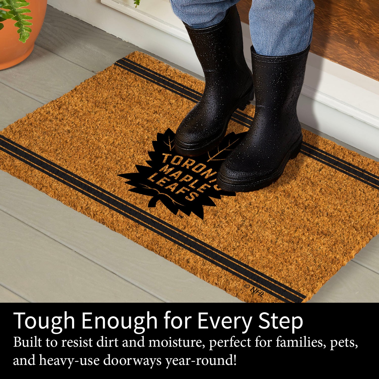 Game day is here! Don't be the only one not showing support. Place this mat in front of the door to welcome friends and family to the home. Sure to incite cheers of fellow fans, it makes the perfect gift for anyone who spends their days checking the score. Crafted from coco husk fiber, the eye-catching mat is natural and eco-friendly. Ideal for high-traffic areas, the mat traps dirt and debris to prevent messes from being tracked into homes. Designs are printed directly on the mats with fade-resistant dyes. Since the mat is crafted from natural coir, some shedding is to be expected. Shake off excess fibers or use a soft brush to gently sweep.