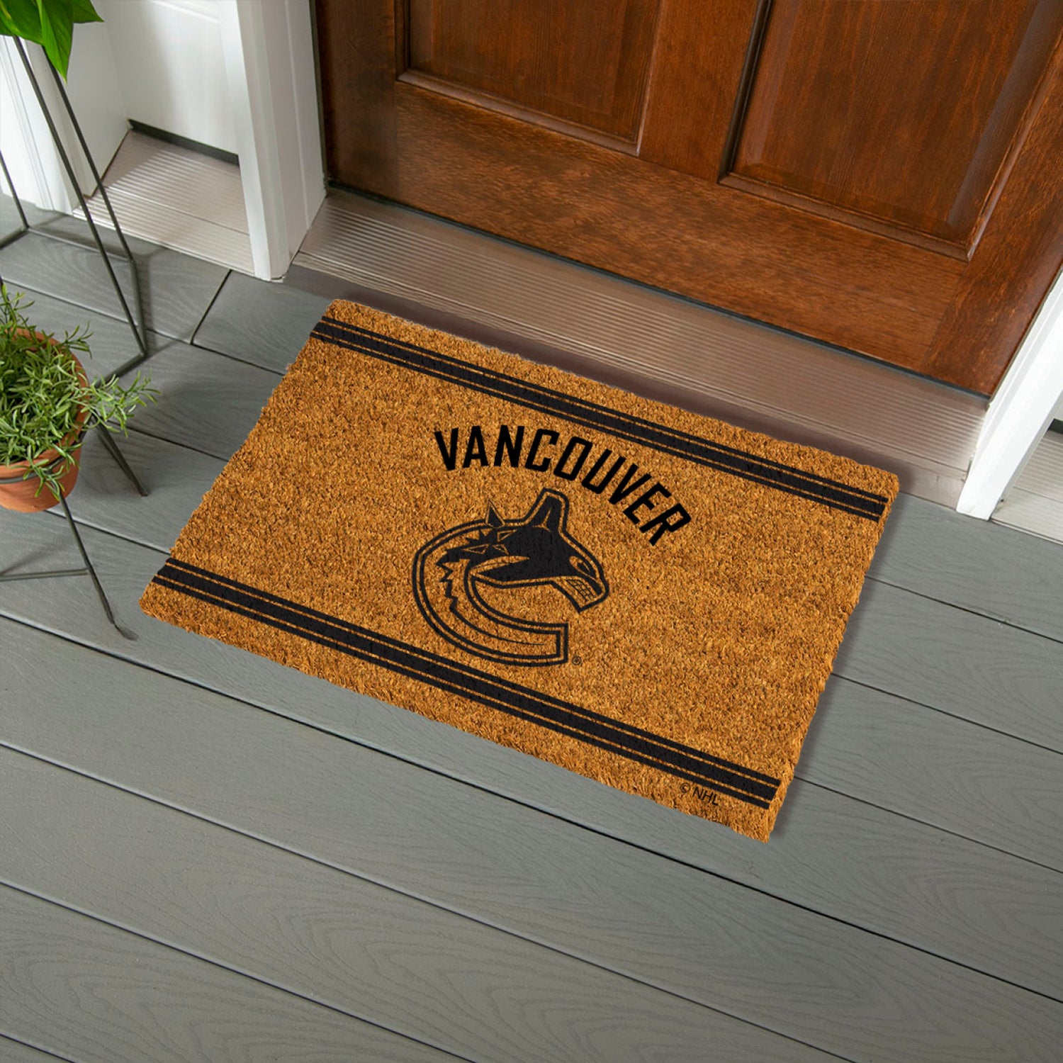 Game day is here! Don't be the only one not showing support. Place this mat in front of the door to welcome friends and family to the home. Sure to incite cheers of fellow fans, it makes the perfect gift for anyone who spends their days checking the score. Crafted from coco husk fiber, the eye-catching mat is natural and eco-friendly. Ideal for high-traffic areas, the mat traps dirt and debris to prevent messes from being tracked into homes. Designs are printed directly on the mats with fade-resistant dyes. Since the mat is crafted from natural coir, some shedding is to be expected. Shake off excess fibers or use a soft brush to gently sweep.