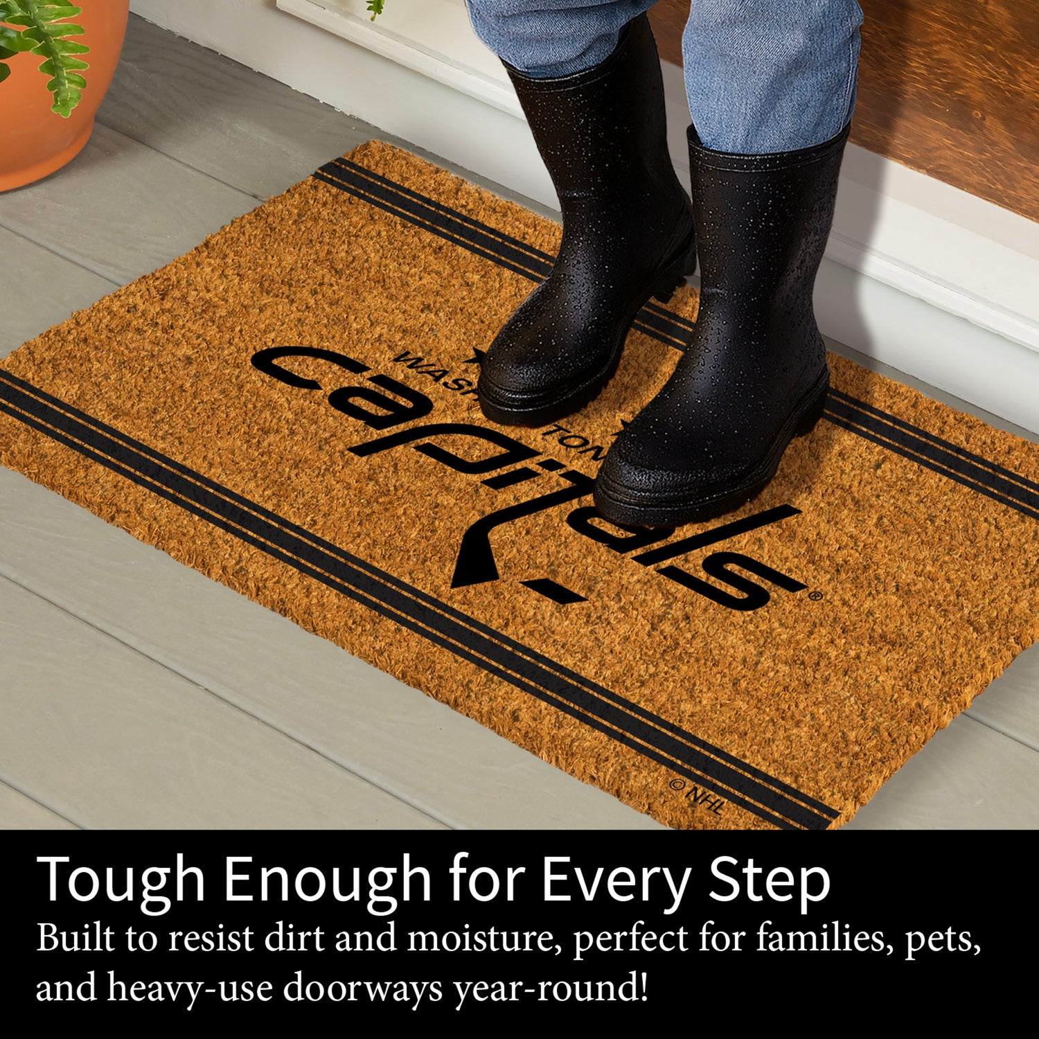 Game day is here! Don't be the only one not showing support. Place this mat in front of the door to welcome friends and family to the home. Sure to incite cheers of fellow fans, it makes the perfect gift for anyone who spends their days checking the score. Crafted from coco husk fiber, the eye-catching mat is natural and eco-friendly. Ideal for high-traffic areas, the mat traps dirt and debris to prevent messes from being tracked into homes. Designs are printed directly on the mats with fade-resistant dyes. Since the mat is crafted from natural coir, some shedding is to be expected. Shake off excess fibers or use a soft brush to gently sweep.