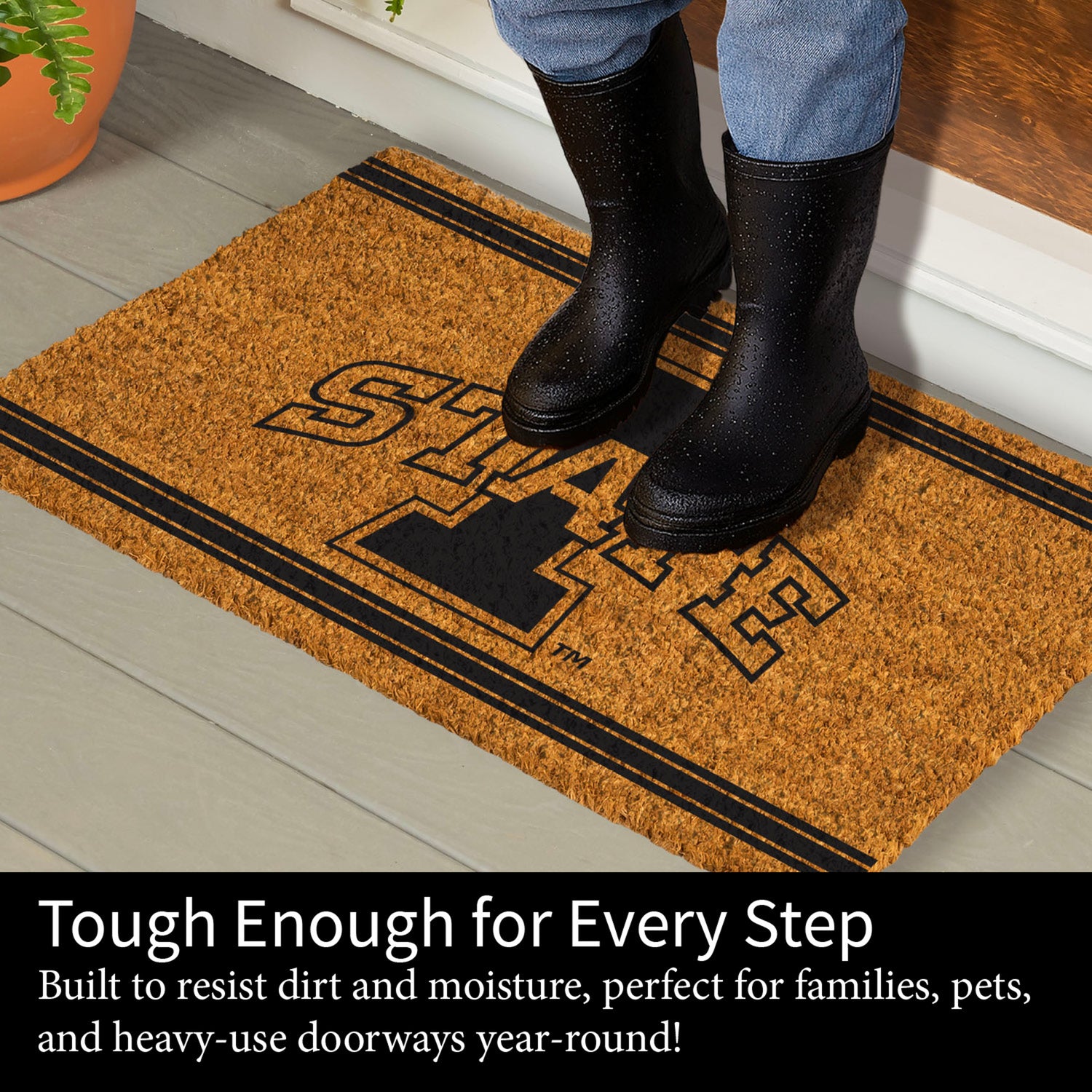 Game day is here! Don't be the only one not showing support. Place this mat in front of the door to welcome friends and family to the home. Sure to incite cheers of fellow fans, it makes the perfect gift for anyone who spends their days checking the score. Crafted from coco husk fiber, the eye-catching mat is natural and eco-friendly. Ideal for high-traffic areas, the mat traps dirt and debris to prevent messes from being tracked into homes. Designs are printed directly on the mats with fade-resistant dyes. Since the mat is crafted from natural coir, some shedding is to be expected. Shake off excess fibers or use a soft brush to gently sweep.