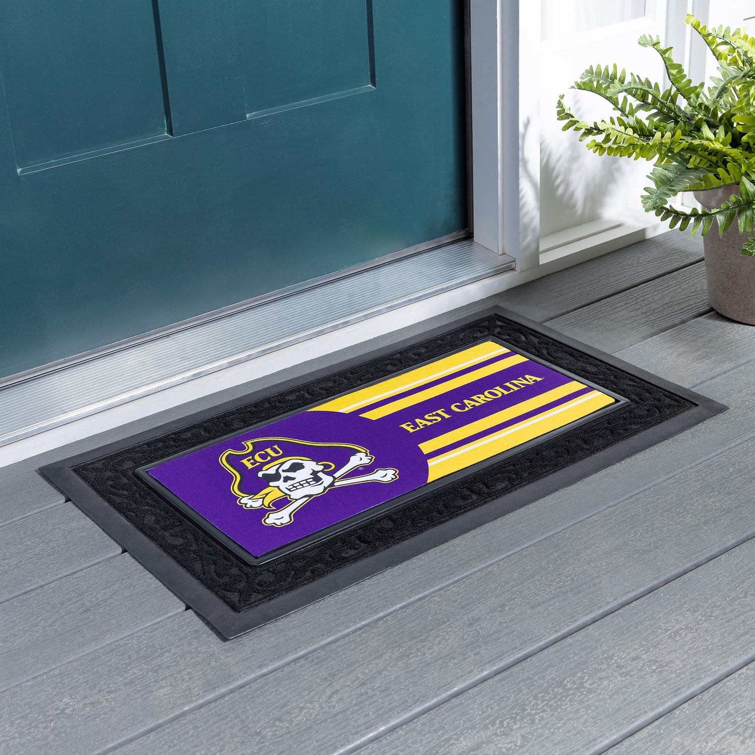 Game day is here! Dont be the only one not showing support. Place this mat in front of the door to welcome friends and family to the home. Sure to incite cheers of fellow fans, it makes the perfect gift for anyone who spends their days checking the score. Crafted from heat-sublimated polyester with a rubber backing, this versatile mat is designed to fit perfectly within Evergreen's switch doormat bases. The mildew resistant mat is ideal for indoor or outdoor use and features a skid-resistant backing to help keep it in place. This welcoming mat will freshen up your stoop season after season while ensuring your home stays debris-free. For stains, simply spot clean with soap and warm water.