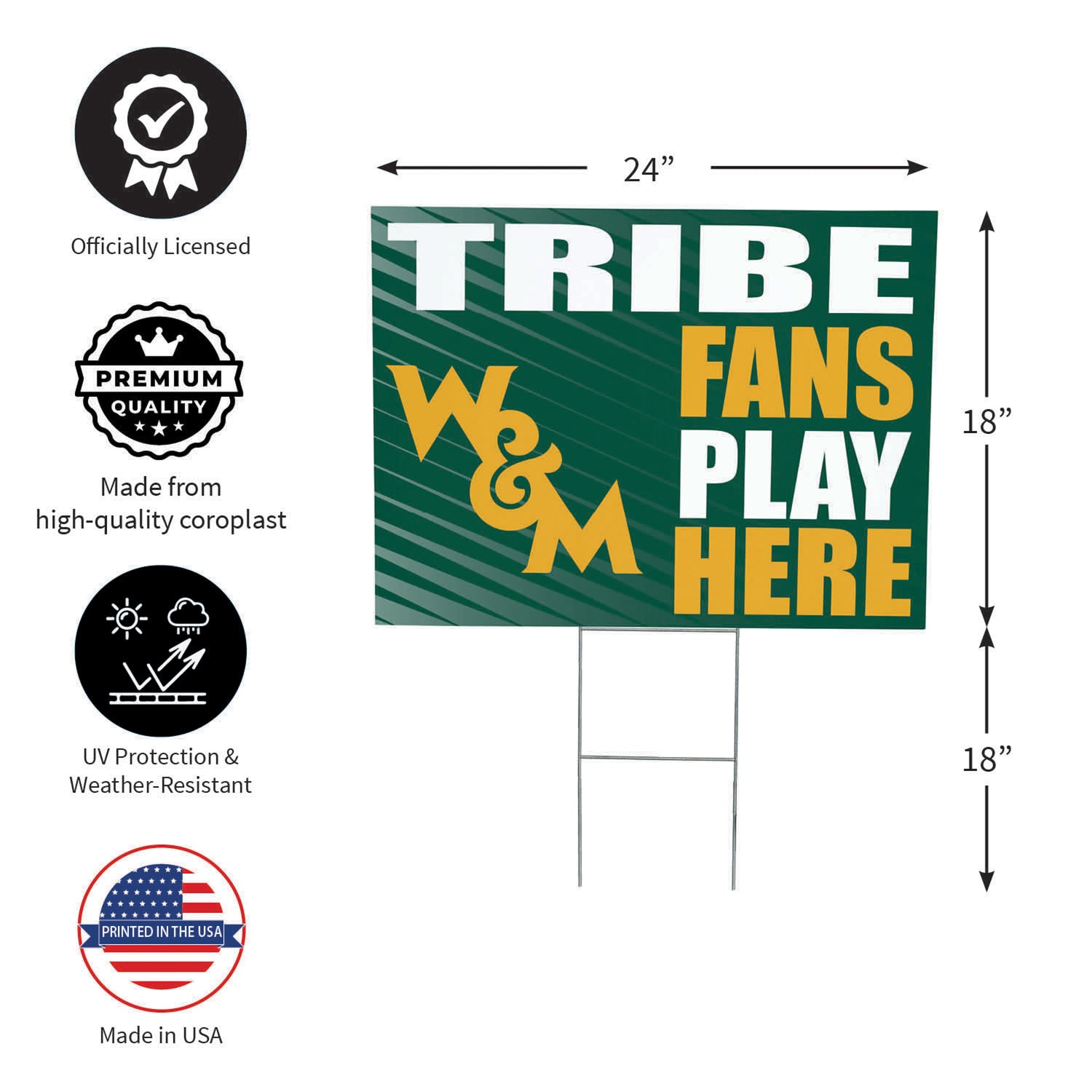 William & Mary Coroplast Yard Sign "Fans Play Here"