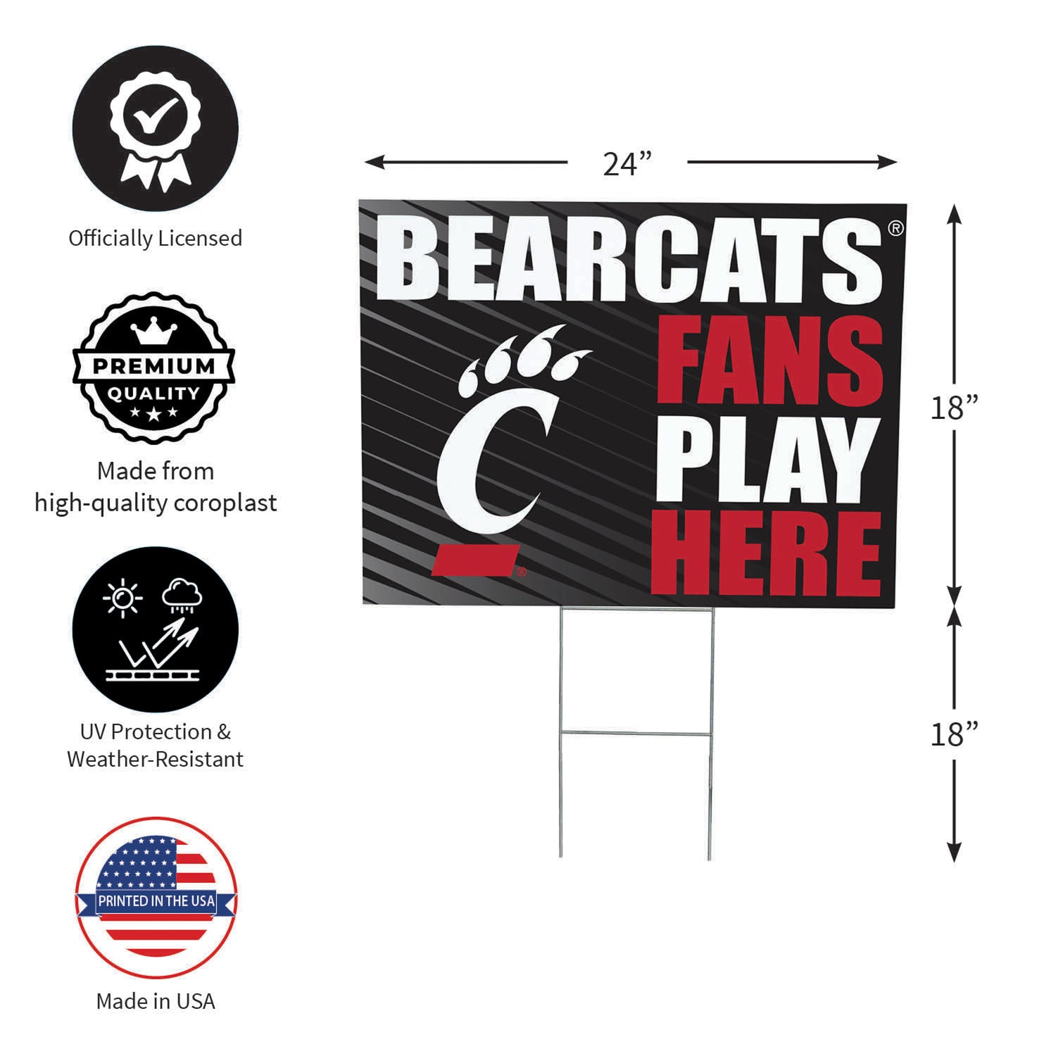 University of Cincinnati Coroplast Yard Sign "Fans Play Here"