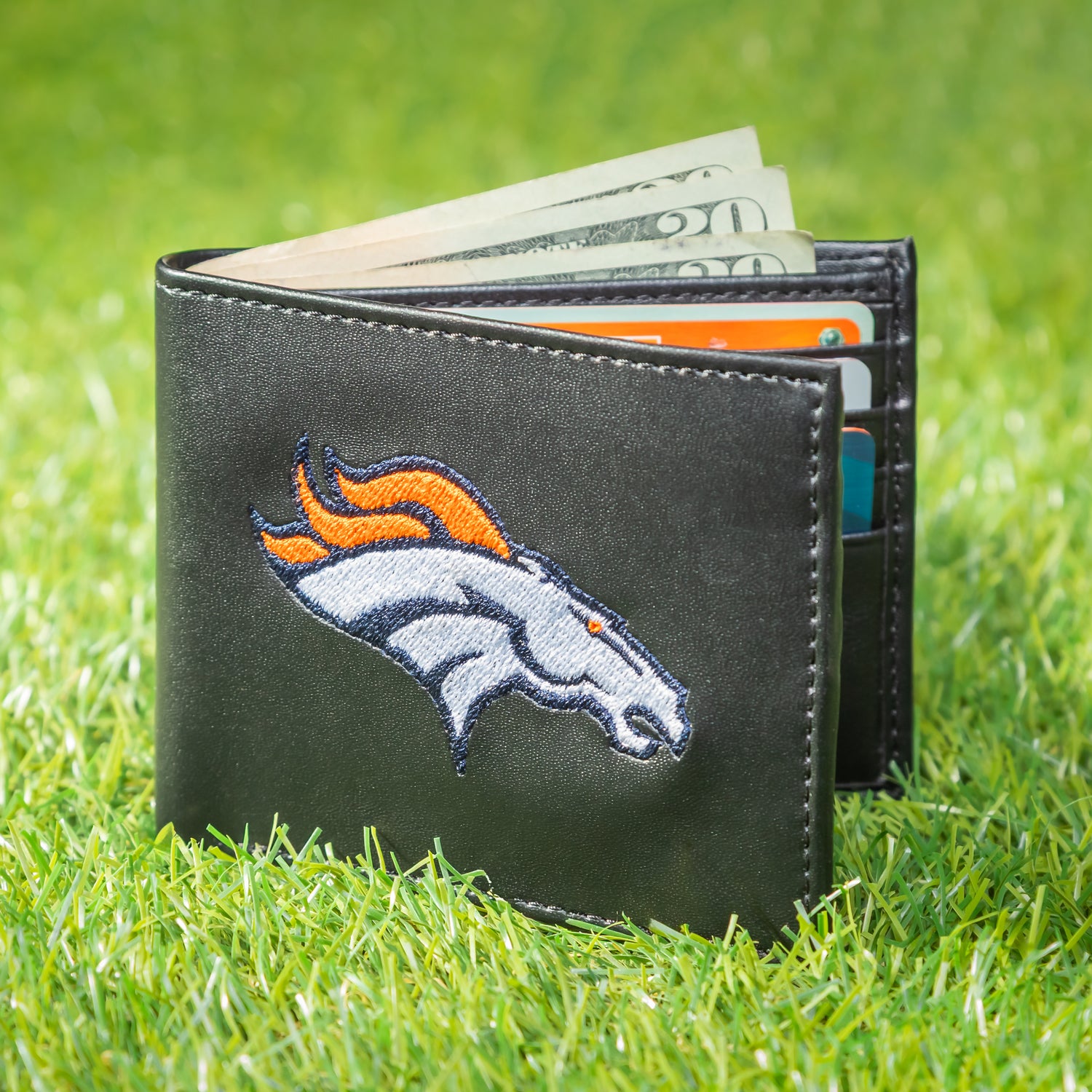 Denver Broncos Black Bi-Fold Embroidered Wallet