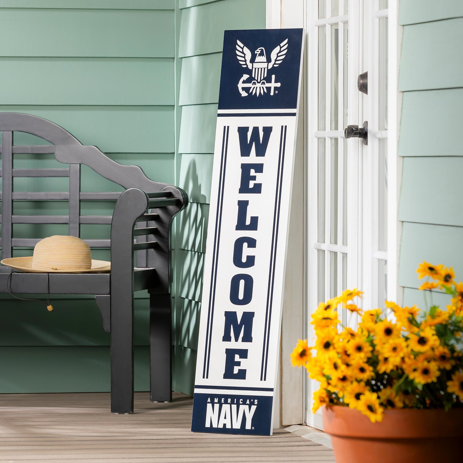 Welcome guests in style with this leaner. Its designed was made to honor those who have served in the military. From friends and family to strangers just walking by, this piece is sure to grab everyones attention. Crafted of durable materials with a weather-resistant design, this decor is outdoor safe and is recommended for covered outdoor use to ensure longevity.