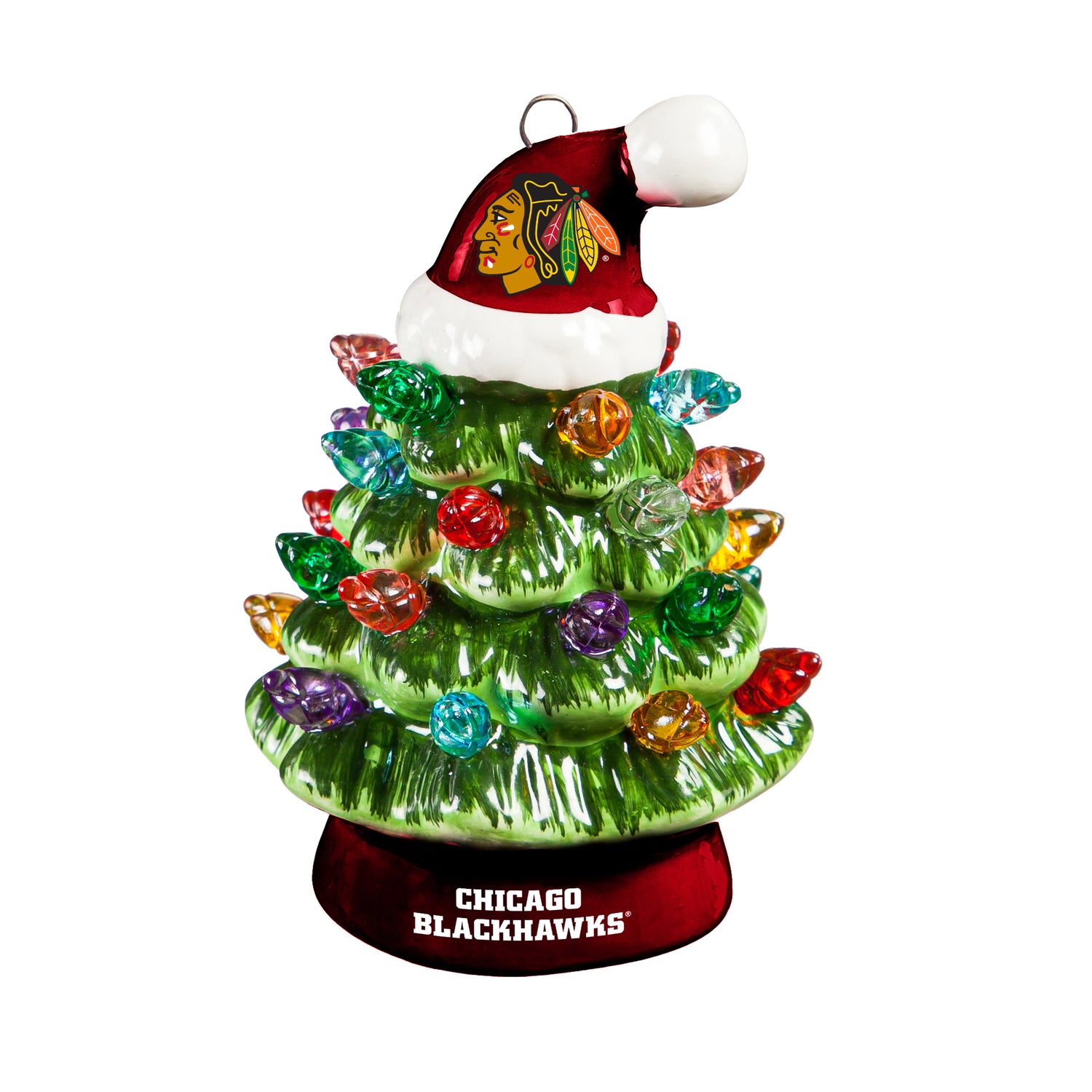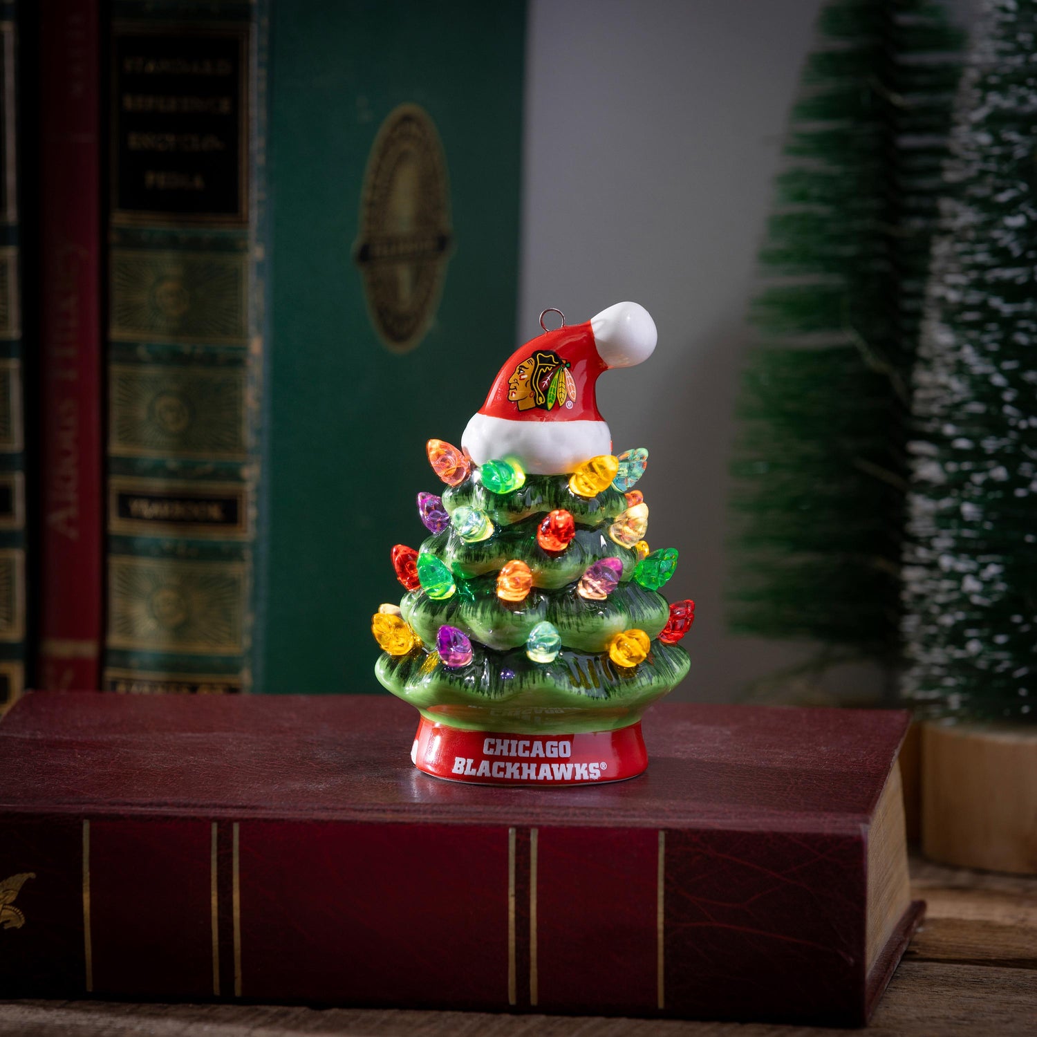 4" Mini LED Tabletop Christmas Tree, Set of 2, Chicago Blackhawks