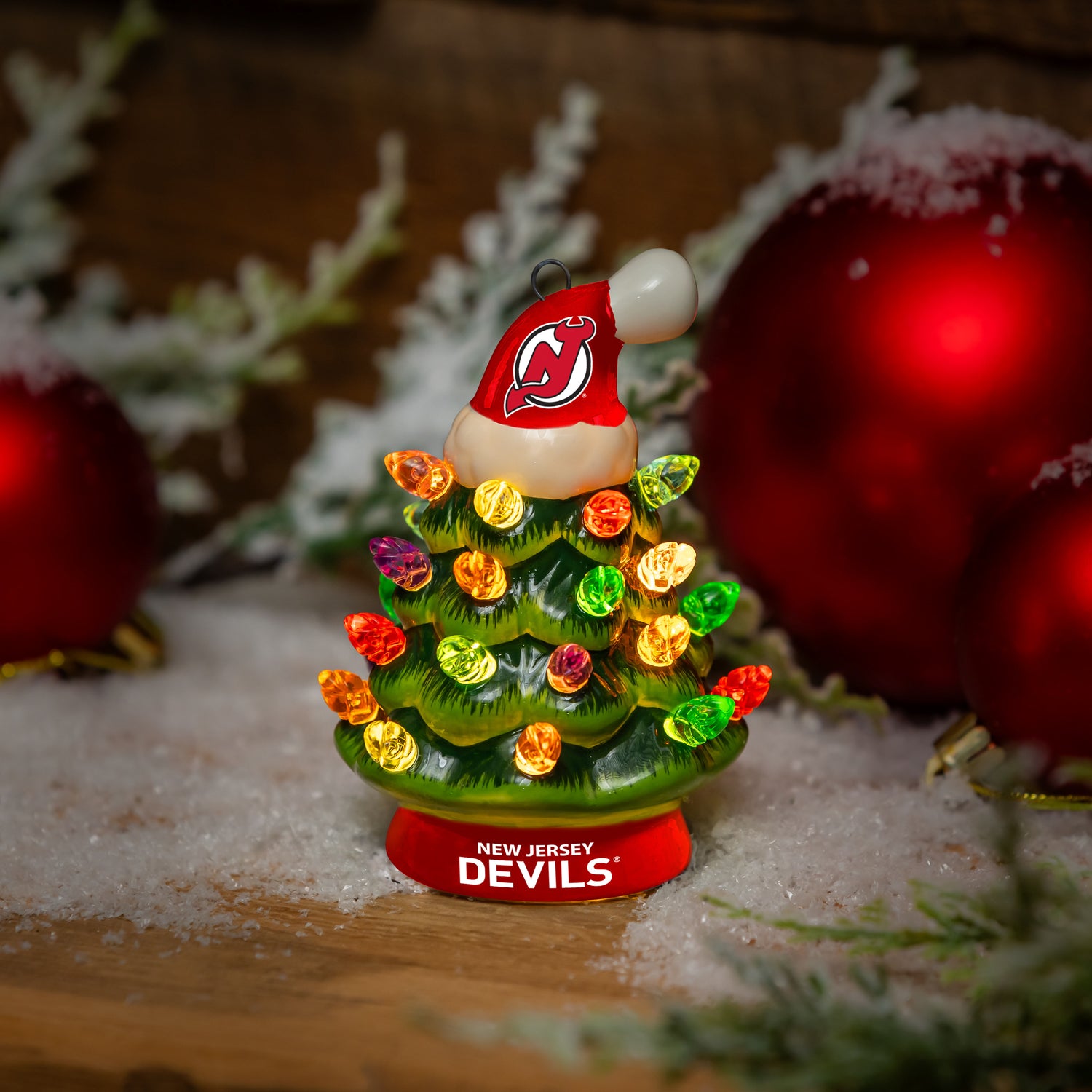 4" Mini LED Tabletop Christmas Tree, Set of 2, New Jersey Devils