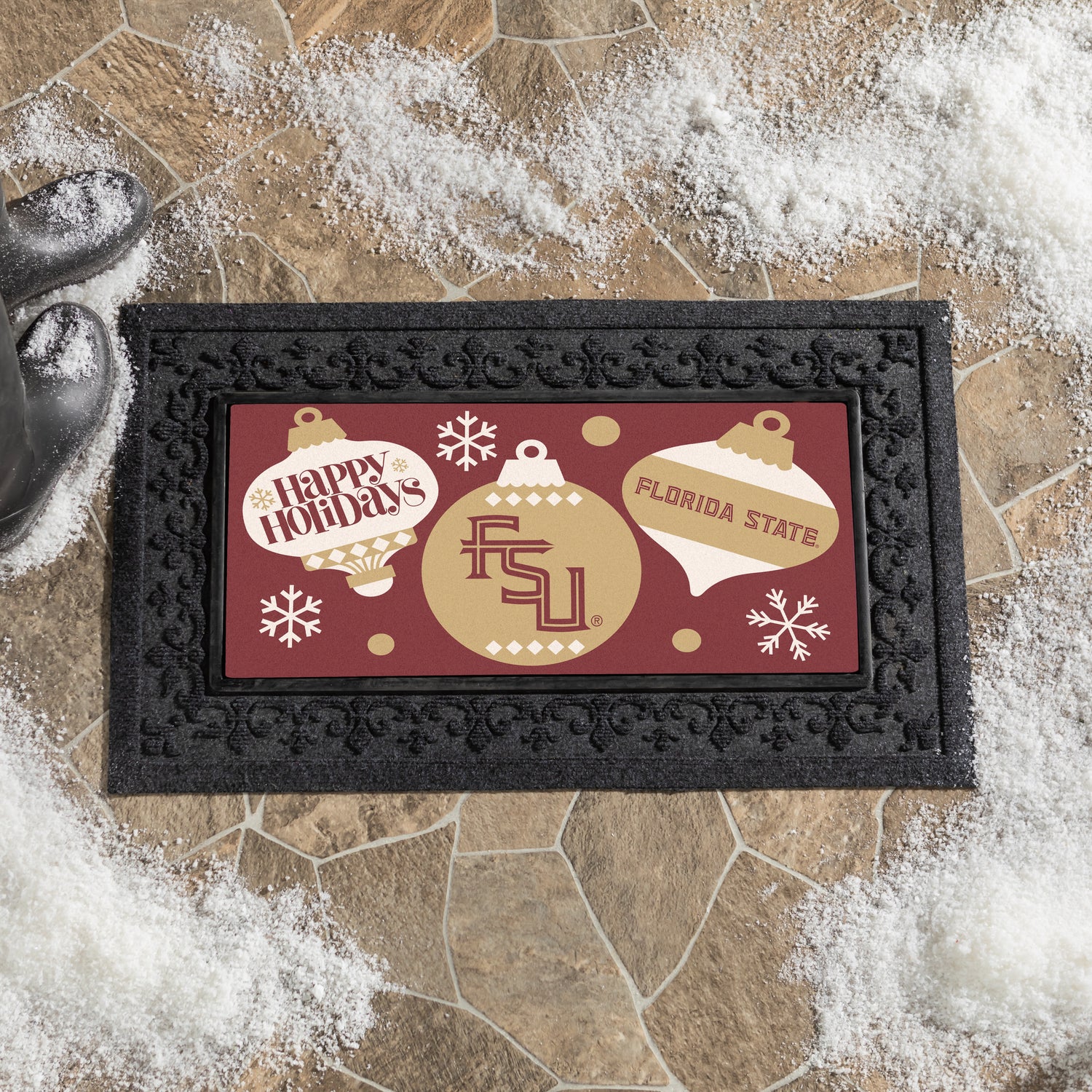 Florida State University Holiday Flocked Coir Sassafras Switch Mat, 22"x10"