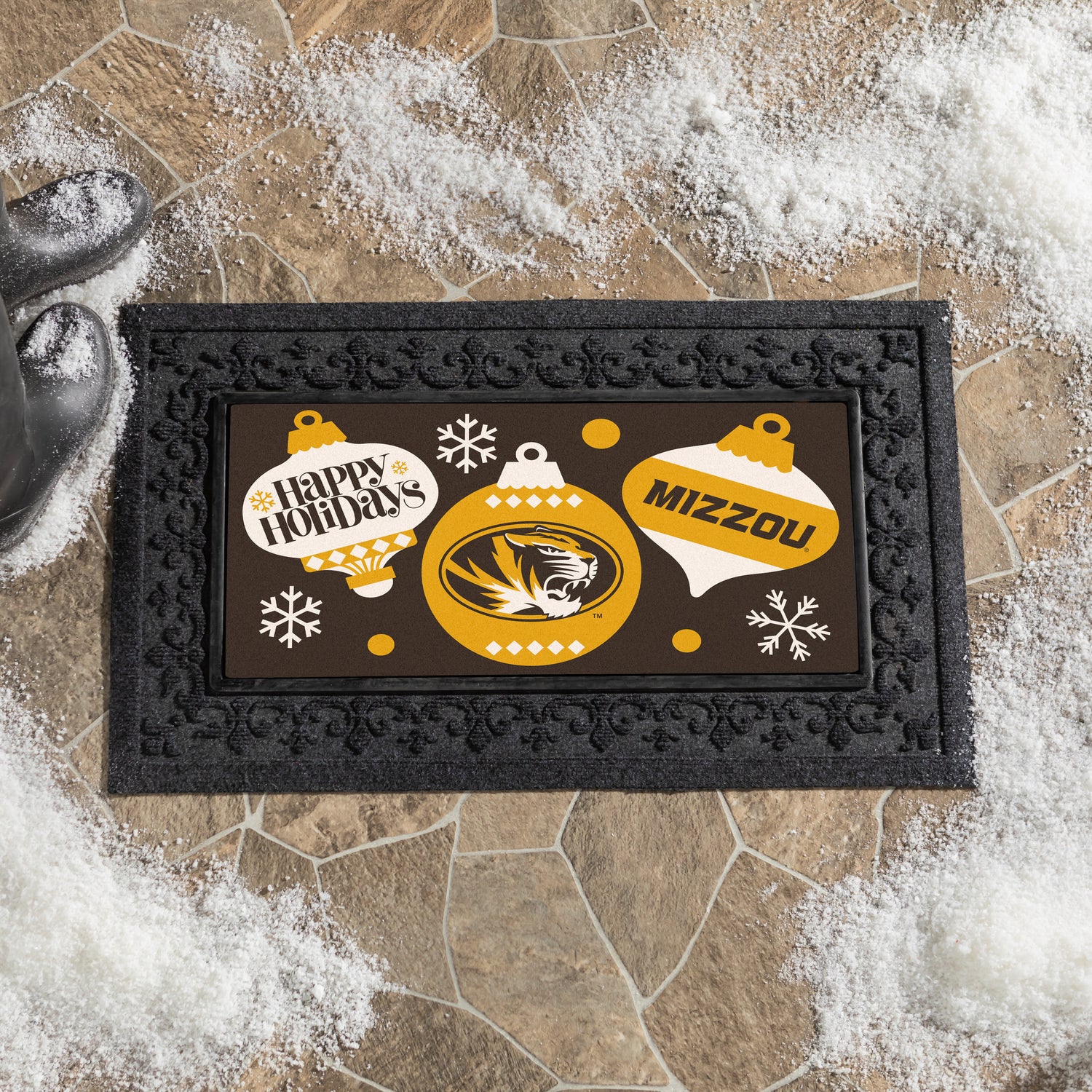 University of Missouri Holiday Flocked Coir Sassafras Switch Mat, 22"x10"