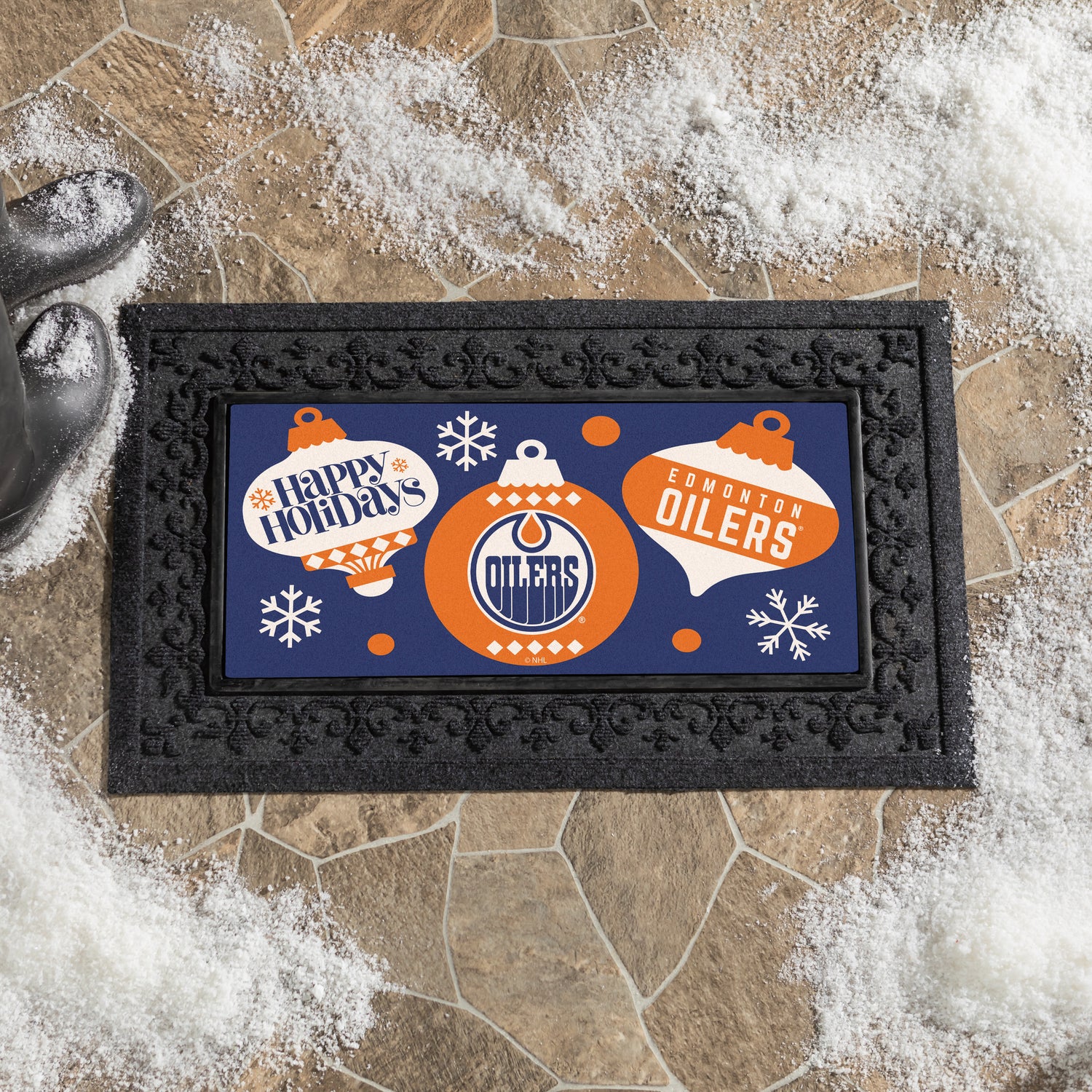 Edmonton Oilers Holiday Flocked Coir Sassafras Switch Mat, 22"x10"