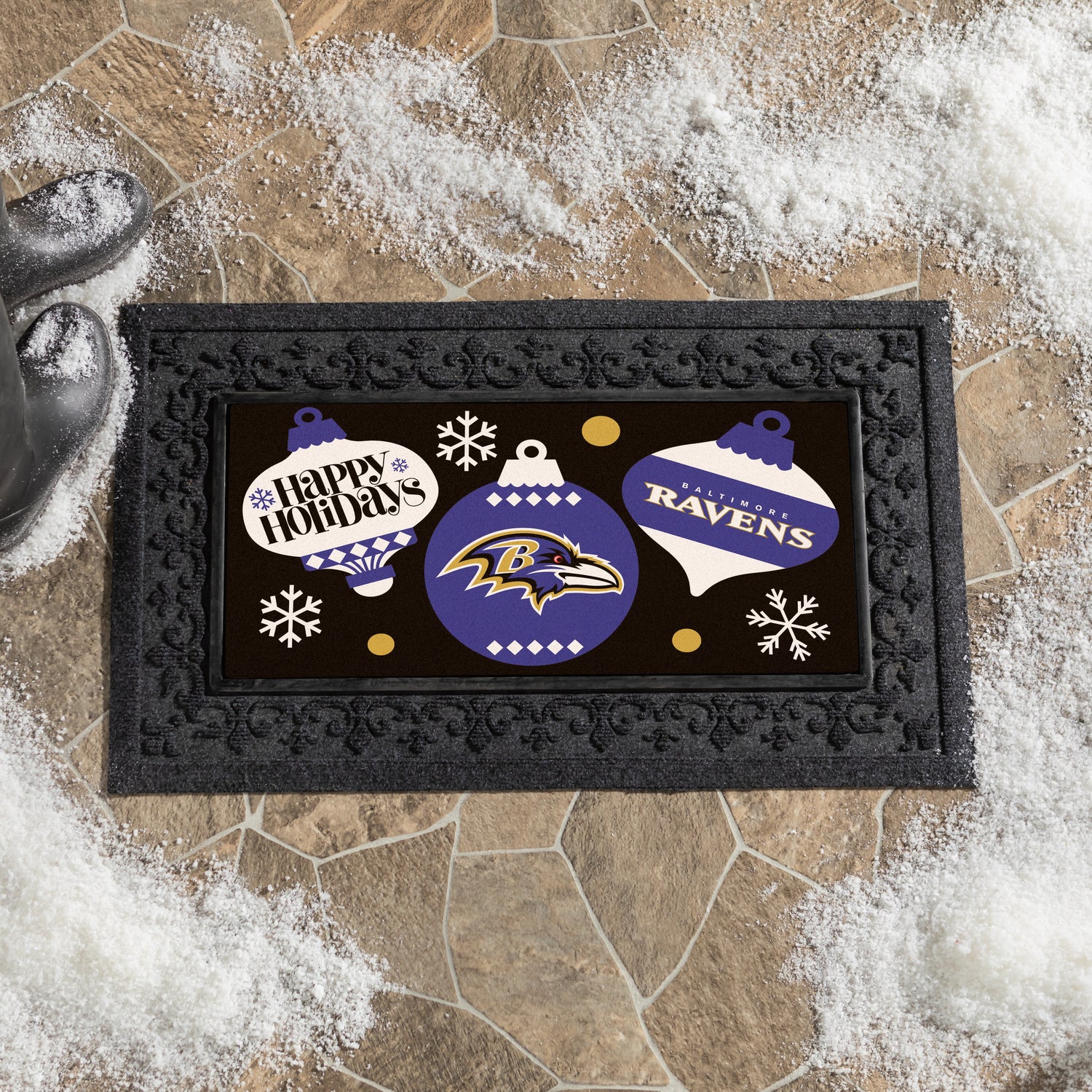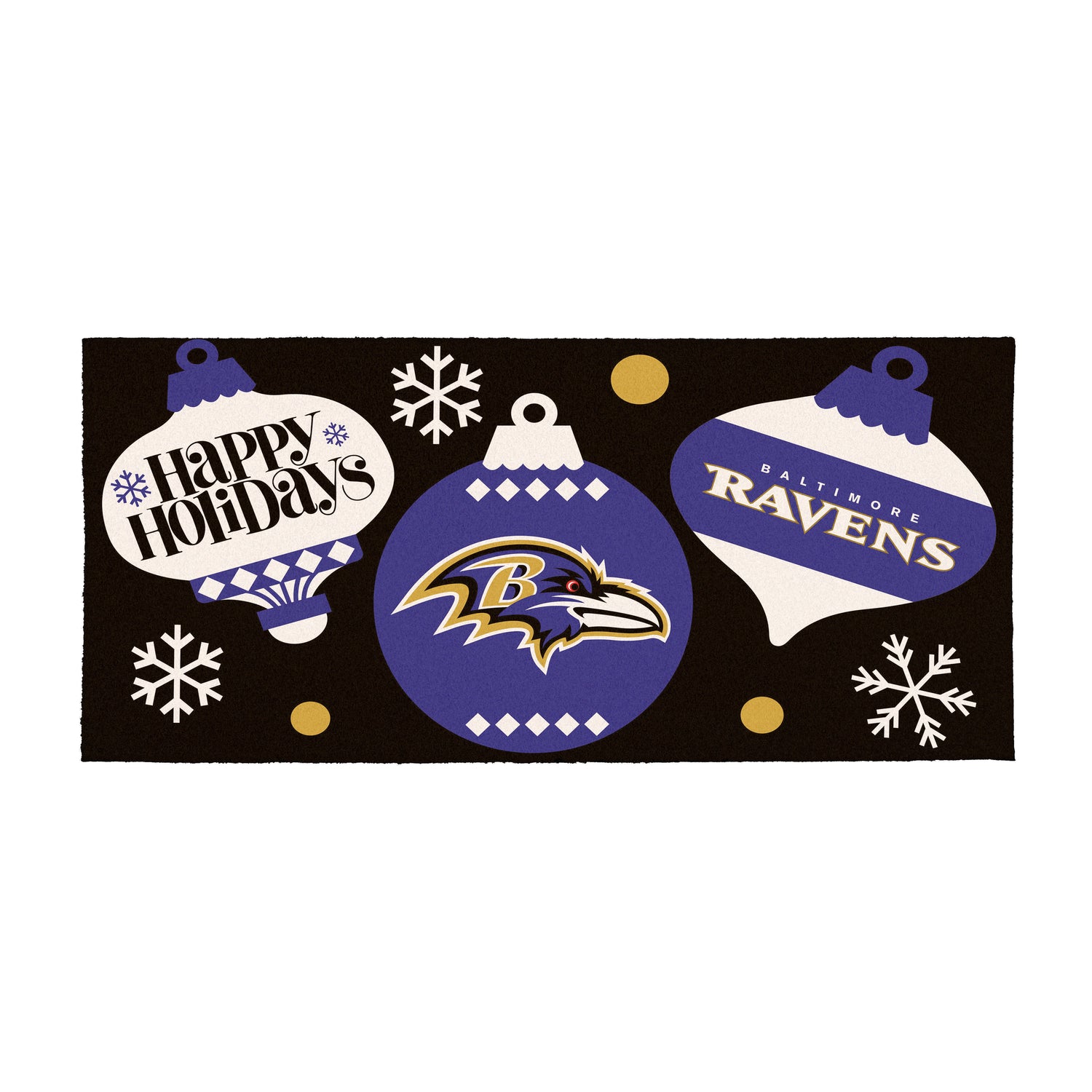 Baltimore Ravens Holiday Flocked Coir Sassafras Switch Mat, 22"x10"