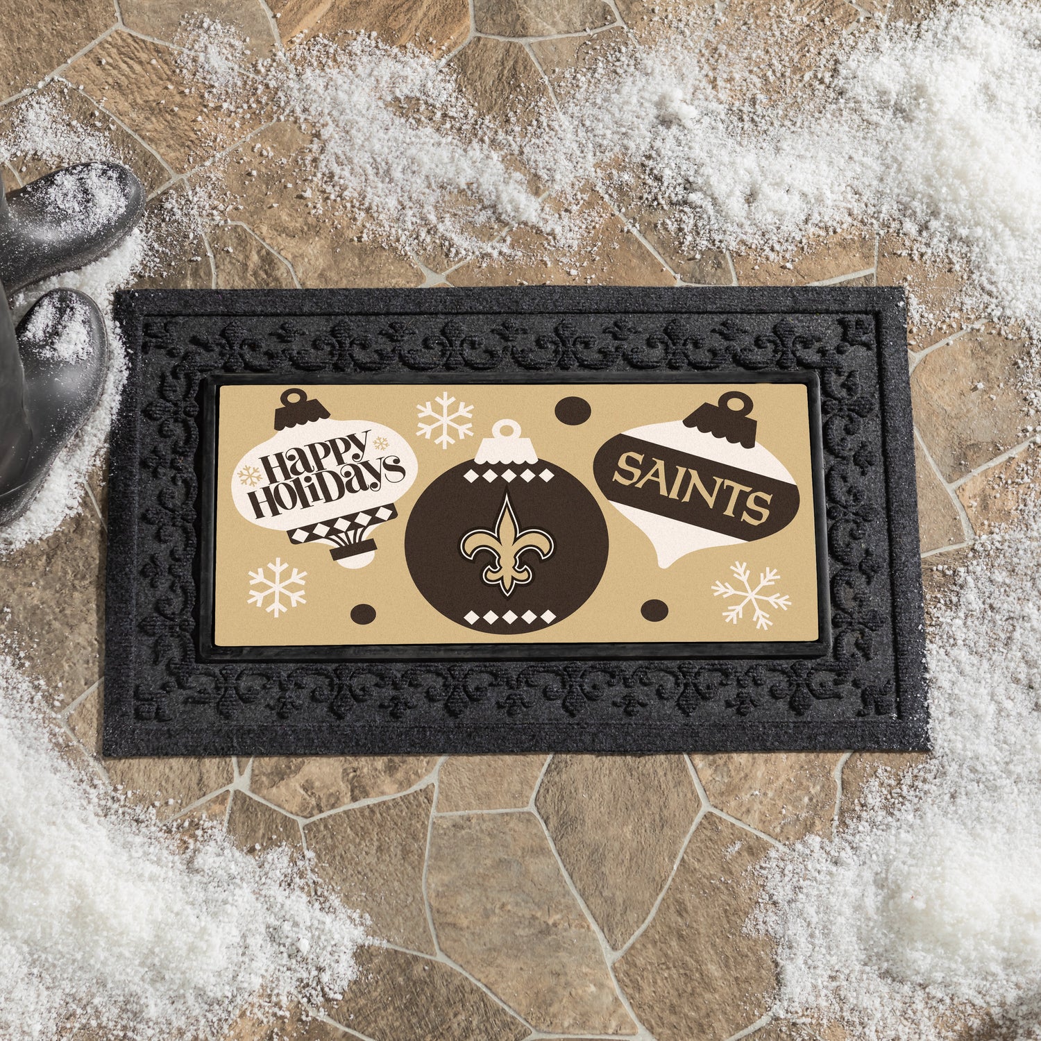 New Orleans Saints Holiday Flocked Coir Sassafras Switch Mat, 22"x10"