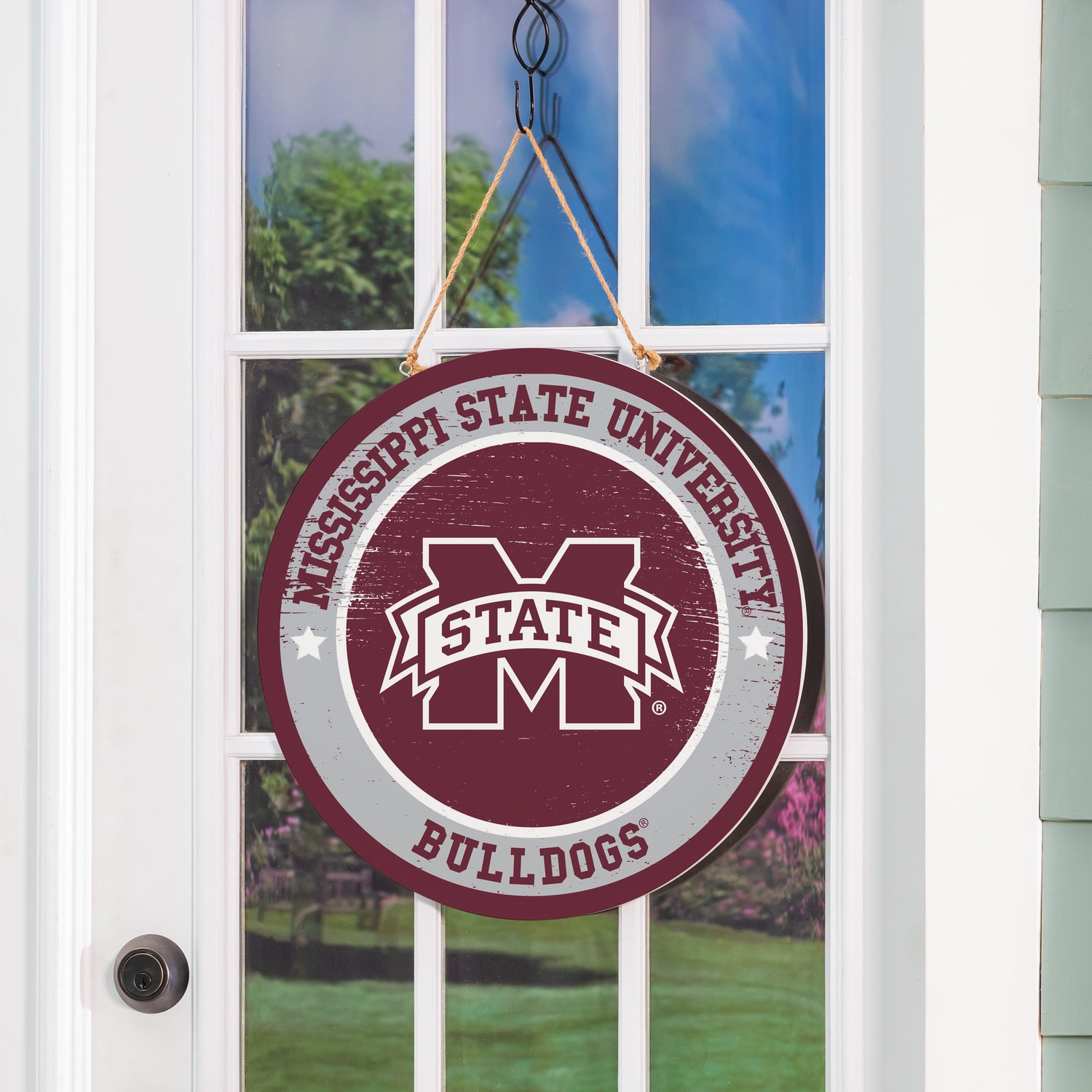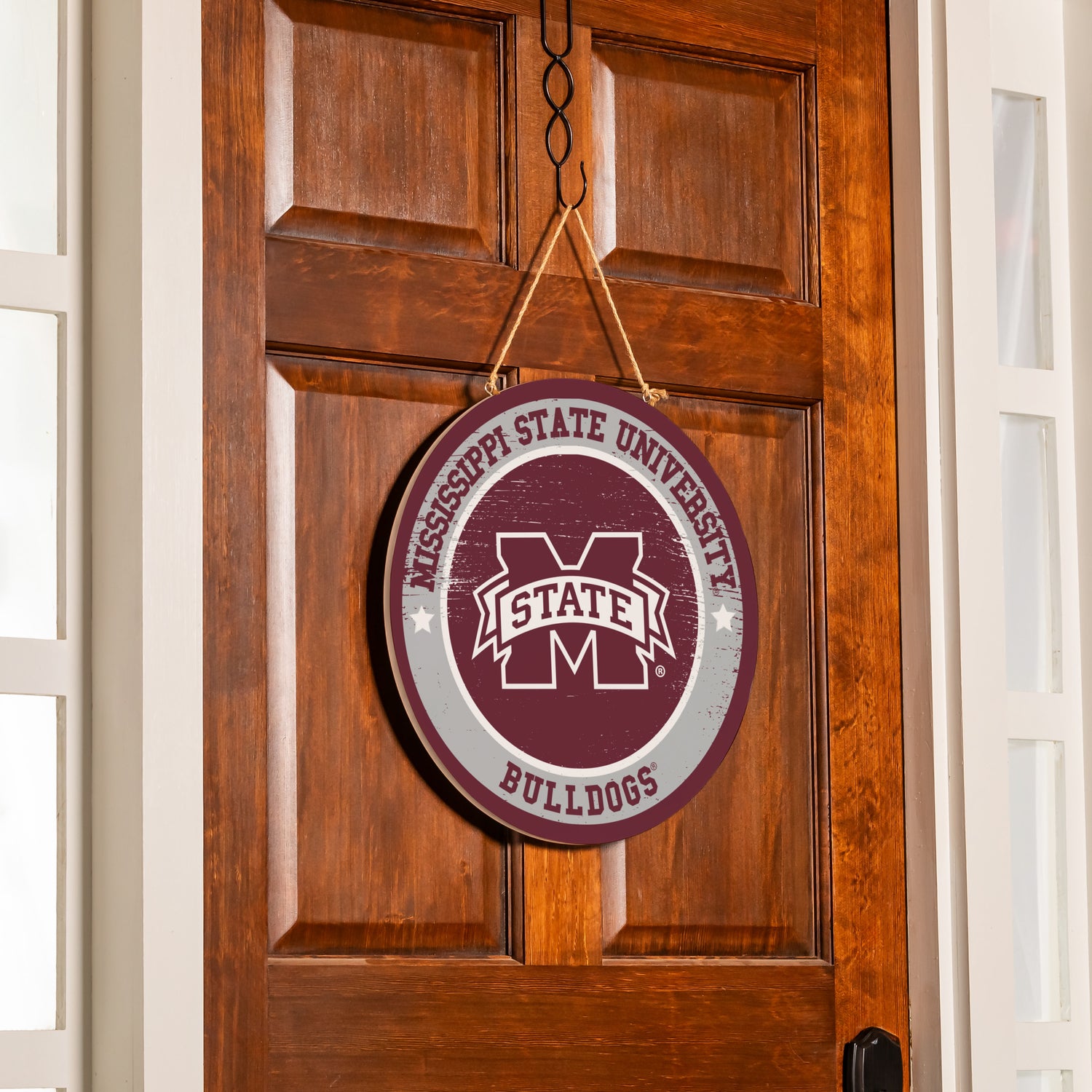 Mississippi State University Round Door Décor with Hanging Rope, 18x18