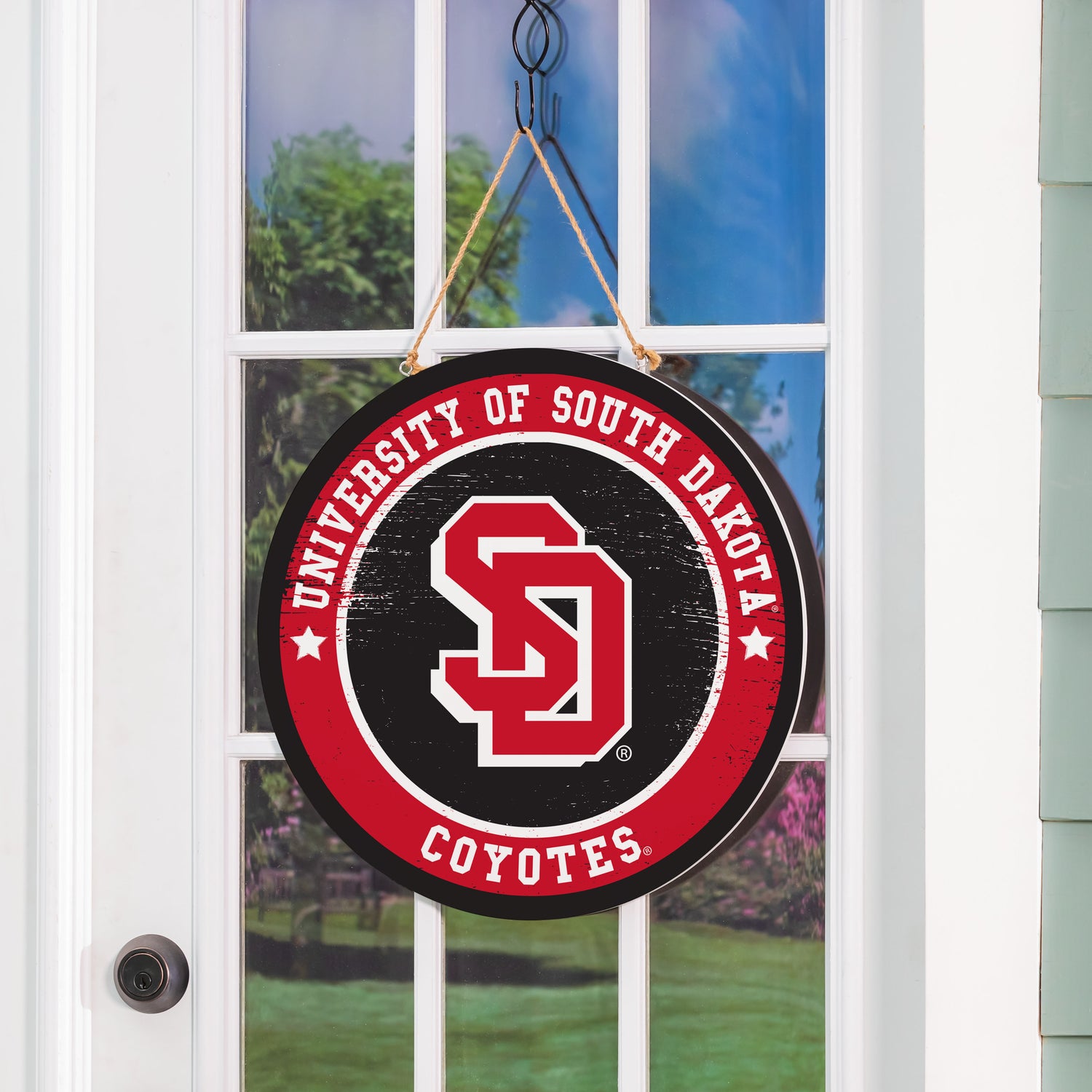 University of South Dakota Round Door Décor with Hanging Rope, 18x18