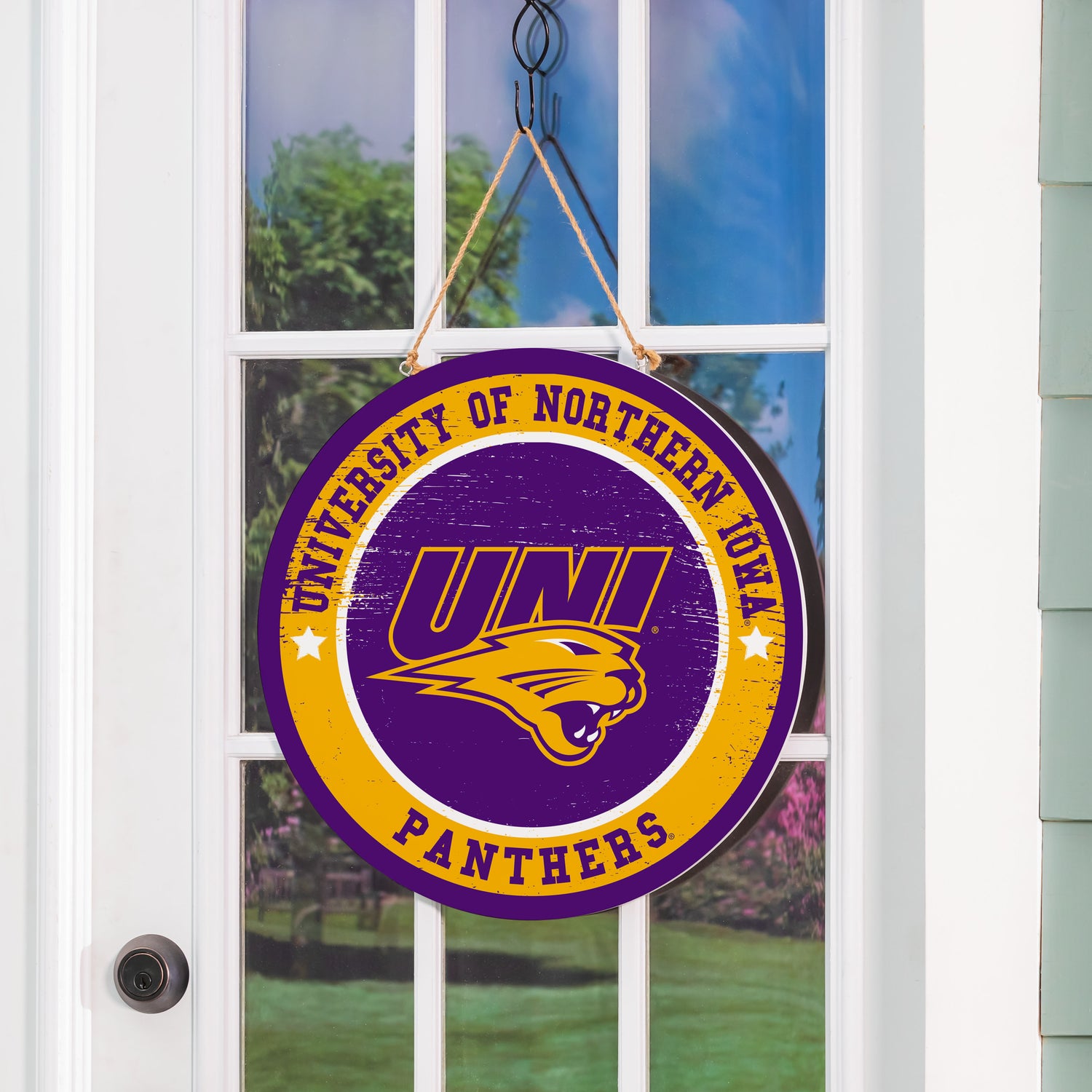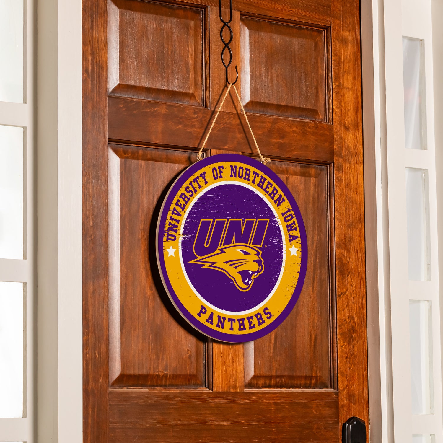 University of Northern Iowa Round Door Décor with Hanging Rope, 18x18