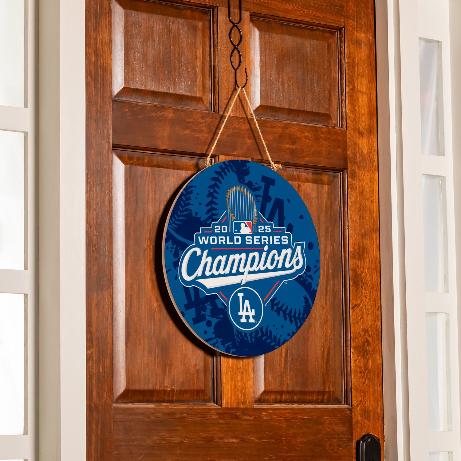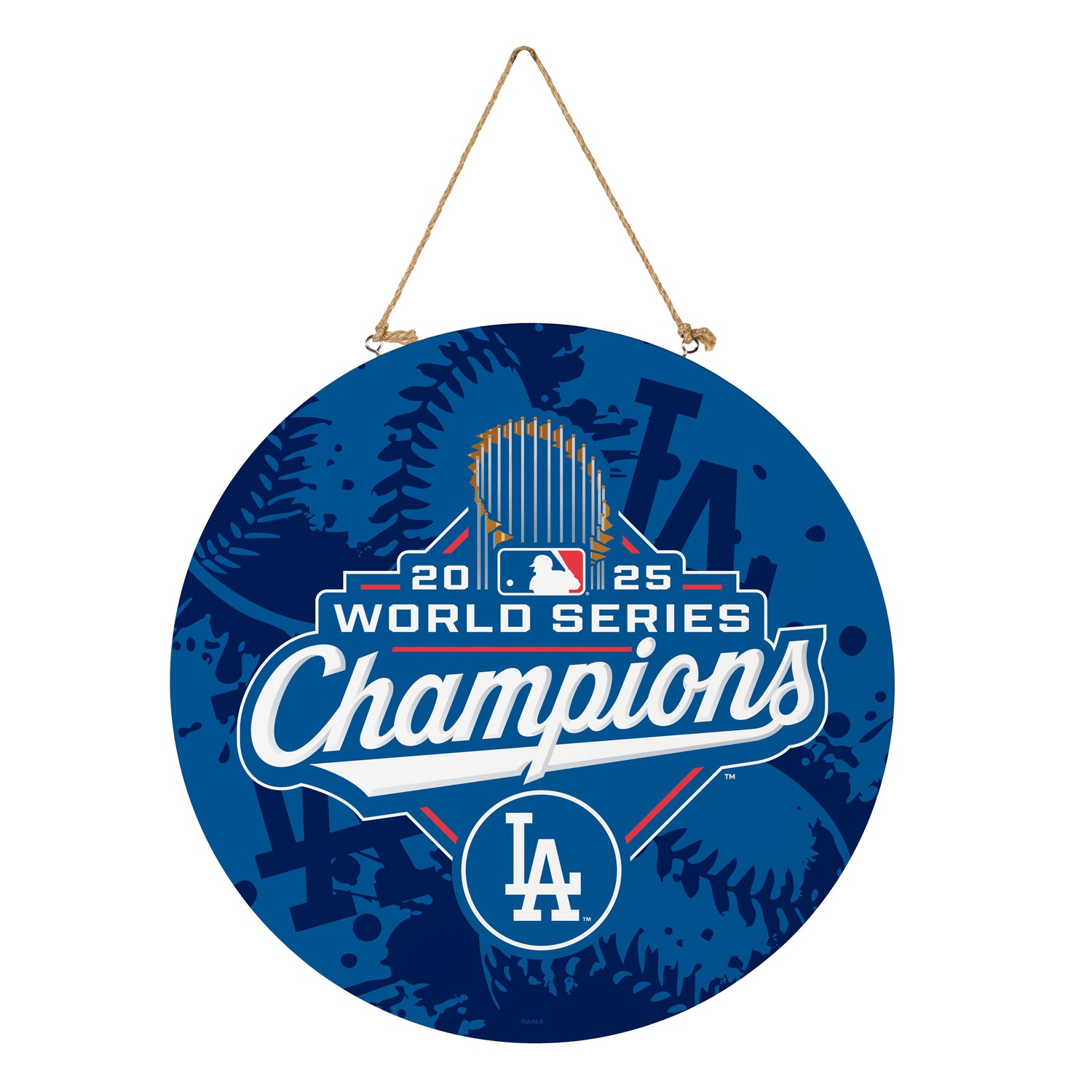 Los Angeles Dodgers, World Series 2025 Round Door Decor with Hanging Rope, 18x18