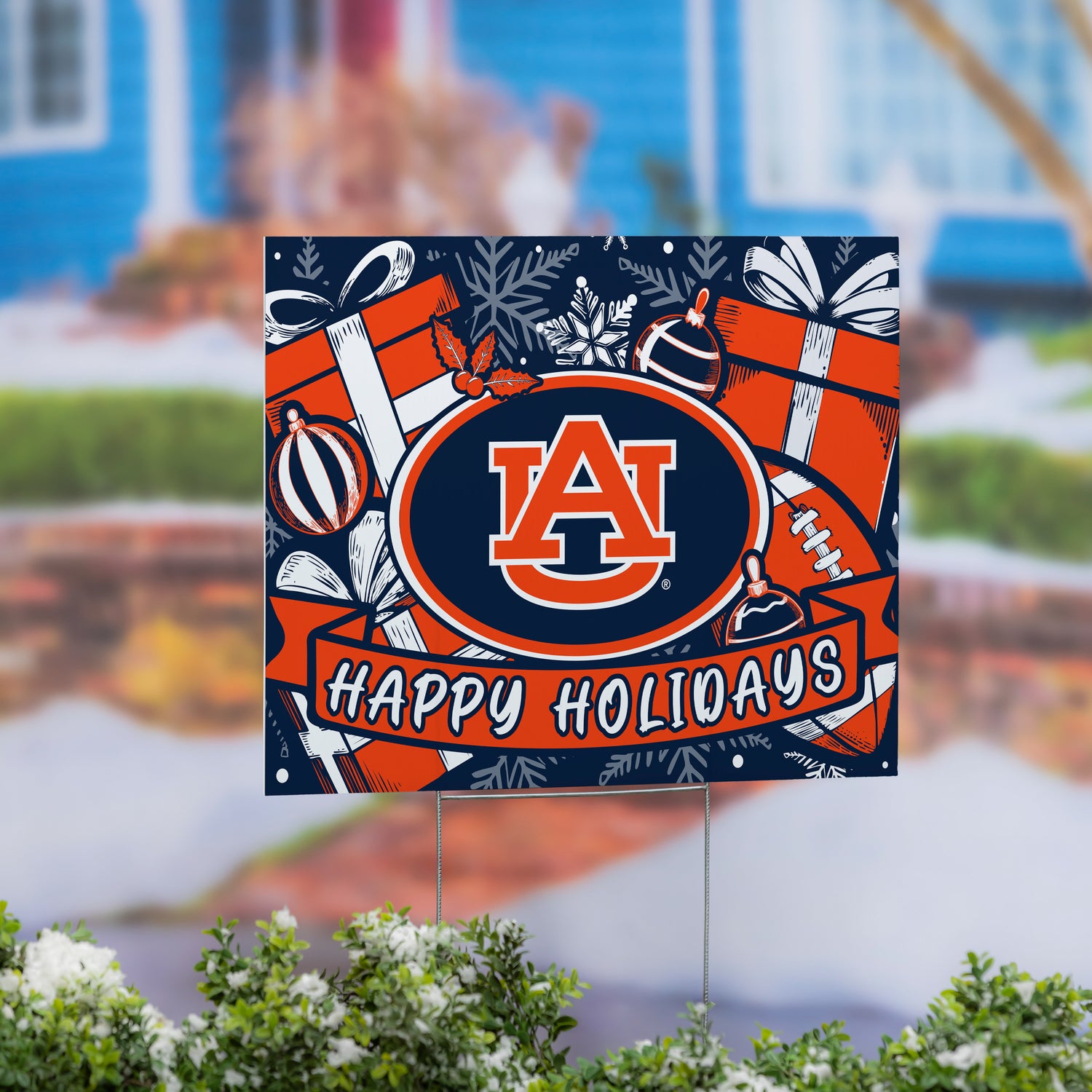 Deck the yard with this wonderful sign during the holiday season. It's the perfect mash-up Christmas and team spirit. Featuring bold team colors, jolly accents, and the officially licensed team logo, it's a must have for sports enthusiasts who love waking up early Christmas mornings to open presents. Whether cheering on the best team or welcoming Santa Claus to the home, this yard sign makes every home dashing. Crafted of durable materials with a weather-resistant design, this decor is recommended for covered outdoor use to ensure longevity.