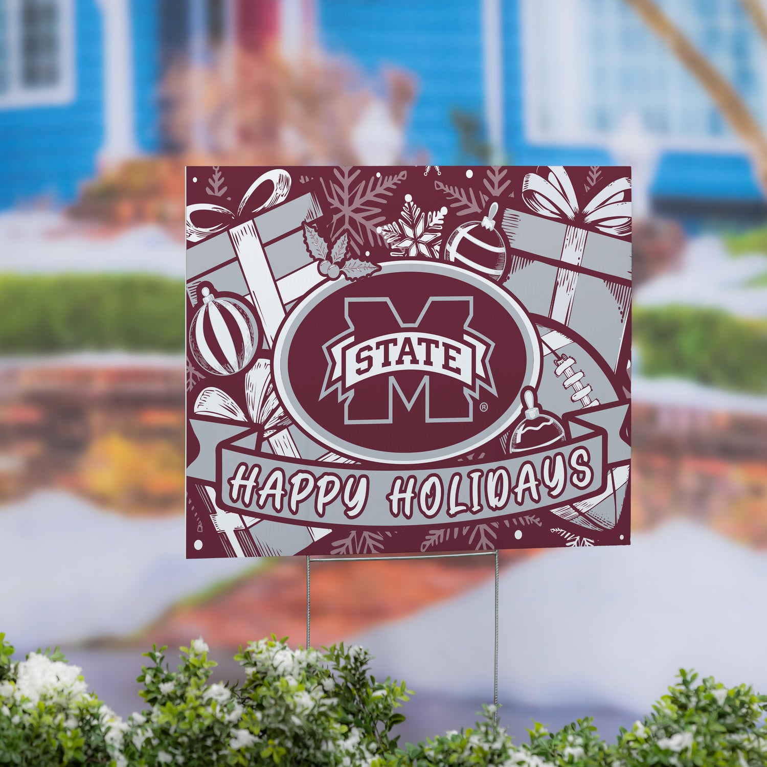 Deck the yard with this wonderful sign during the holiday season. It's the perfect mash-up Christmas and team spirit. Featuring bold team colors, jolly accents, and the officially licensed team logo, it's a must have for sports enthusiasts who love waking up early Christmas mornings to open presents. Whether cheering on the best team or welcoming Santa Claus to the home, this yard sign makes every home dashing. Crafted of durable materials with a weather-resistant design, this decor is recommended for covered outdoor use to ensure longevity.