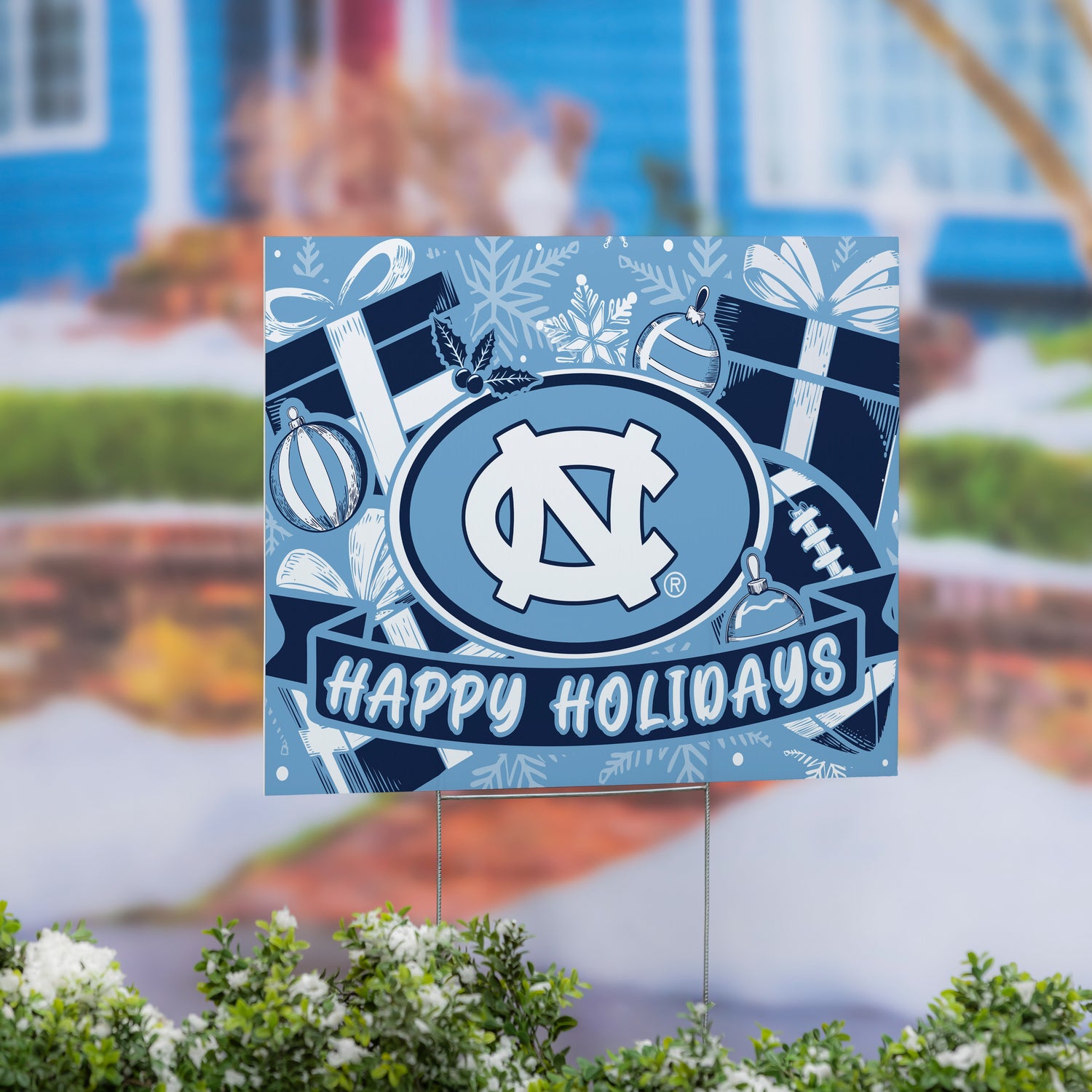 Deck the yard with this wonderful sign during the holiday season. It's the perfect mash-up Christmas and team spirit. Featuring bold team colors, jolly accents, and the officially licensed team logo, it's a must have for sports enthusiasts who love waking up early Christmas mornings to open presents. Whether cheering on the best team or welcoming Santa Claus to the home, this yard sign makes every home dashing. Crafted of durable materials with a weather-resistant design, this decor is recommended for covered outdoor use to ensure longevity.