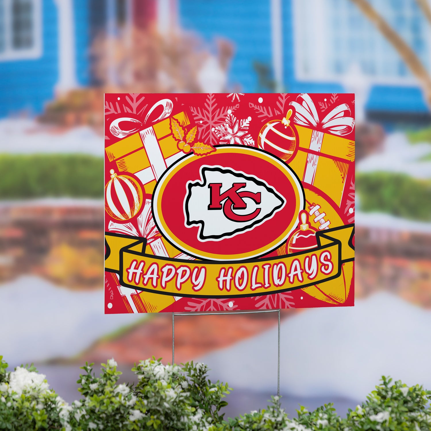 Deck the yard with this wonderful sign during the holiday season. It's the perfect mash-up Christmas and team spirit. Featuring bold team colors, jolly accents, and the officially licensed team logo, it's a must have for sports enthusiasts who love waking up early Christmas mornings to open presents. Whether cheering on the best team or welcoming Santa Claus to the home, this yard sign makes every home dashing. Crafted of durable materials with a weather-resistant design, this decor is recommended for covered outdoor use to ensure longevity.