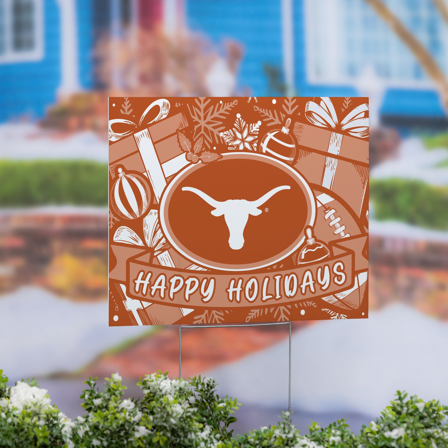Deck the yard with this wonderful sign during the holiday season. It's the perfect mash-up Christmas and team spirit. Featuring bold team colors, jolly accents, and the officially licensed team logo, it's a must have for sports enthusiasts who love waking up early Christmas mornings to open presents. Whether cheering on the best team or welcoming Santa Claus to the home, this yard sign makes every home dashing. Crafted of durable materials with a weather-resistant design, this decor is recommended for covered outdoor use to ensure longevity.