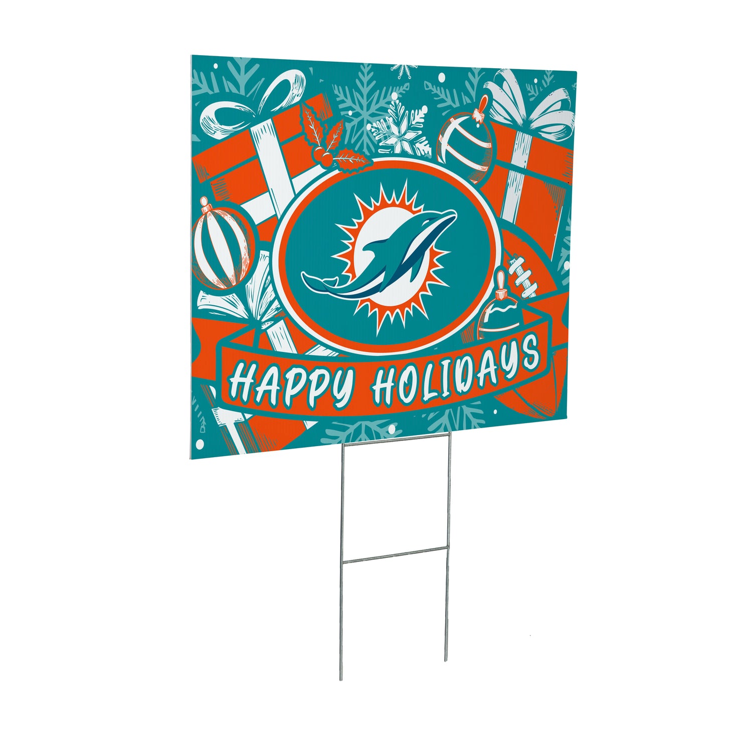 Deck the yard with this wonderful sign during the holiday season. It's the perfect mash-up Christmas and team spirit. Featuring bold team colors, jolly accents, and the officially licensed team logo, it's a must have for sports enthusiasts who love waking up early Christmas mornings to open presents. Whether cheering on the best team or welcoming Santa Claus to the home, this yard sign makes every home dashing. Crafted of durable materials with a weather-resistant design, this decor is recommended for covered outdoor use to ensure longevity.
