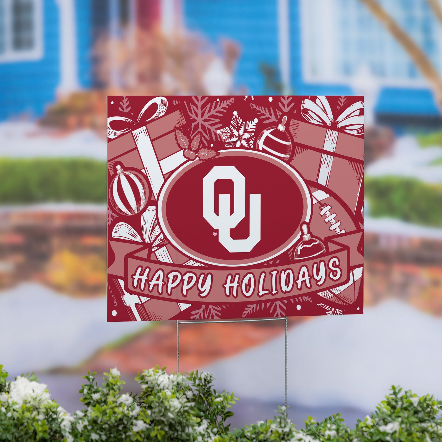 Deck the yard with this wonderful sign during the holiday season. It's the perfect mash-up Christmas and team spirit. Featuring bold team colors, jolly accents, and the officially licensed team logo, it's a must have for sports enthusiasts who love waking up early Christmas mornings to open presents. Whether cheering on the best team or welcoming Santa Claus to the home, this yard sign makes every home dashing. Crafted of durable materials with a weather-resistant design, this decor is recommended for covered outdoor use to ensure longevity.