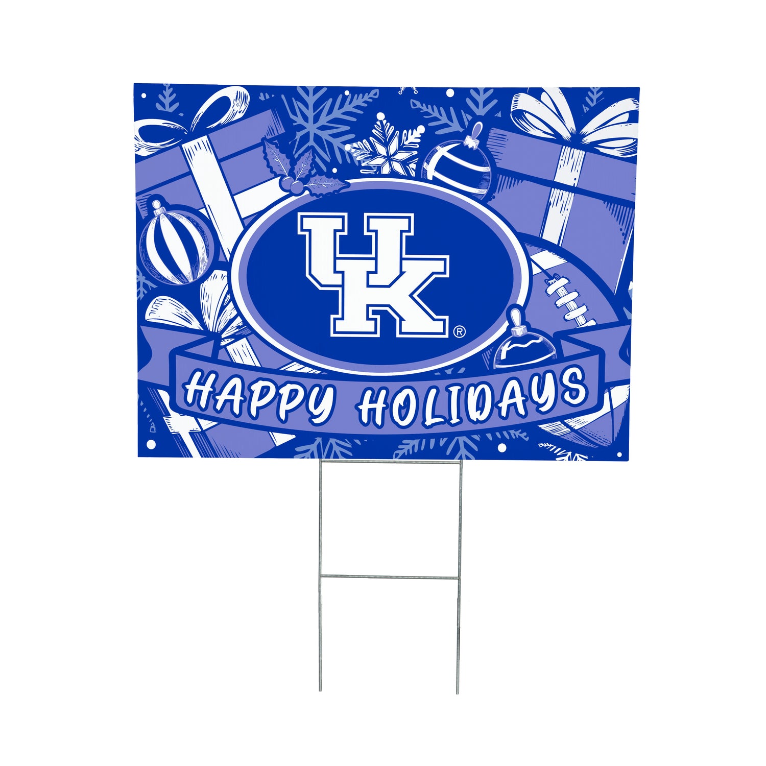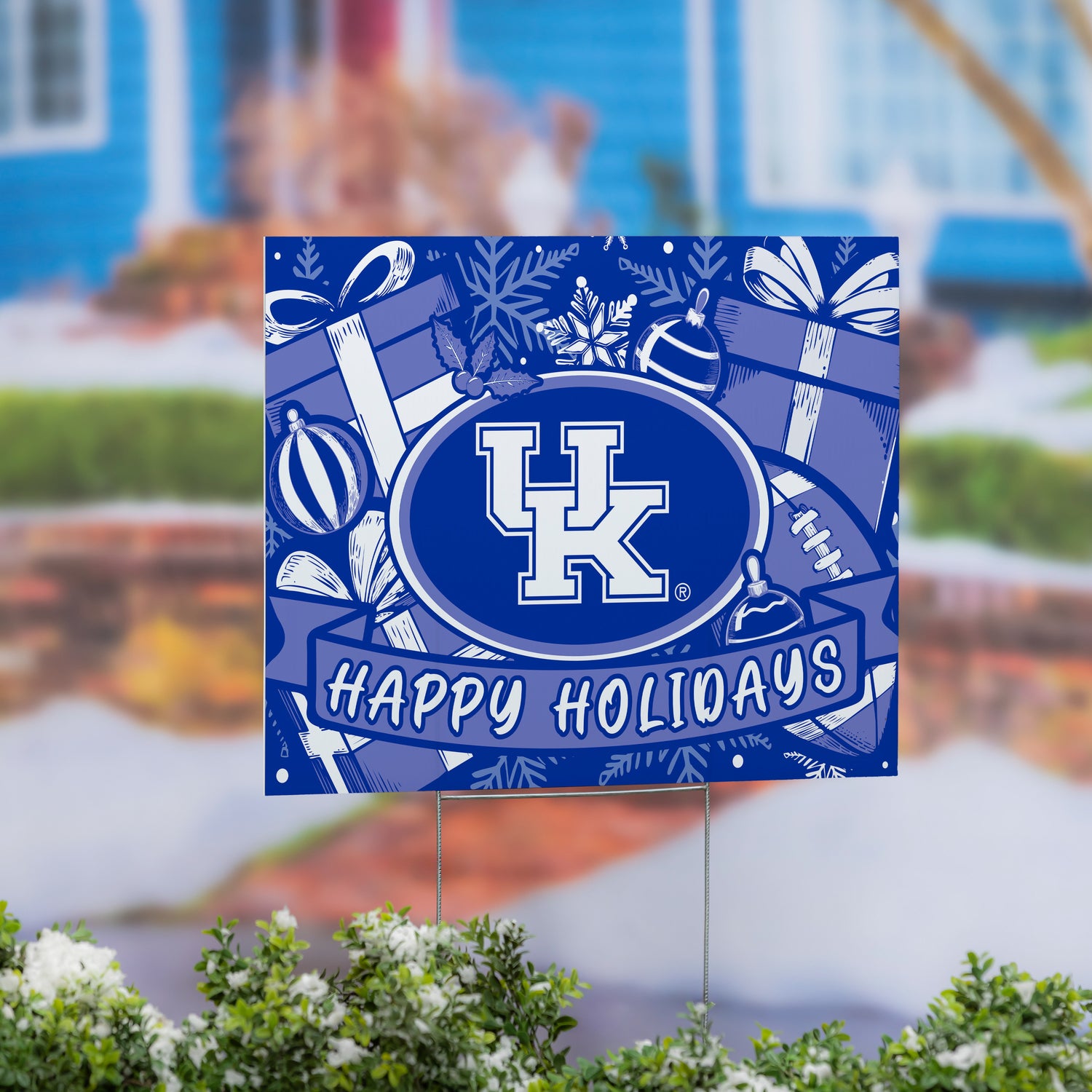 Deck the yard with this wonderful sign during the holiday season. It's the perfect mash-up Christmas and team spirit. Featuring bold team colors, jolly accents, and the officially licensed team logo, it's a must have for sports enthusiasts who love waking up early Christmas mornings to open presents. Whether cheering on the best team or welcoming Santa Claus to the home, this yard sign makes every home dashing. Crafted of durable materials with a weather-resistant design, this decor is recommended for covered outdoor use to ensure longevity.