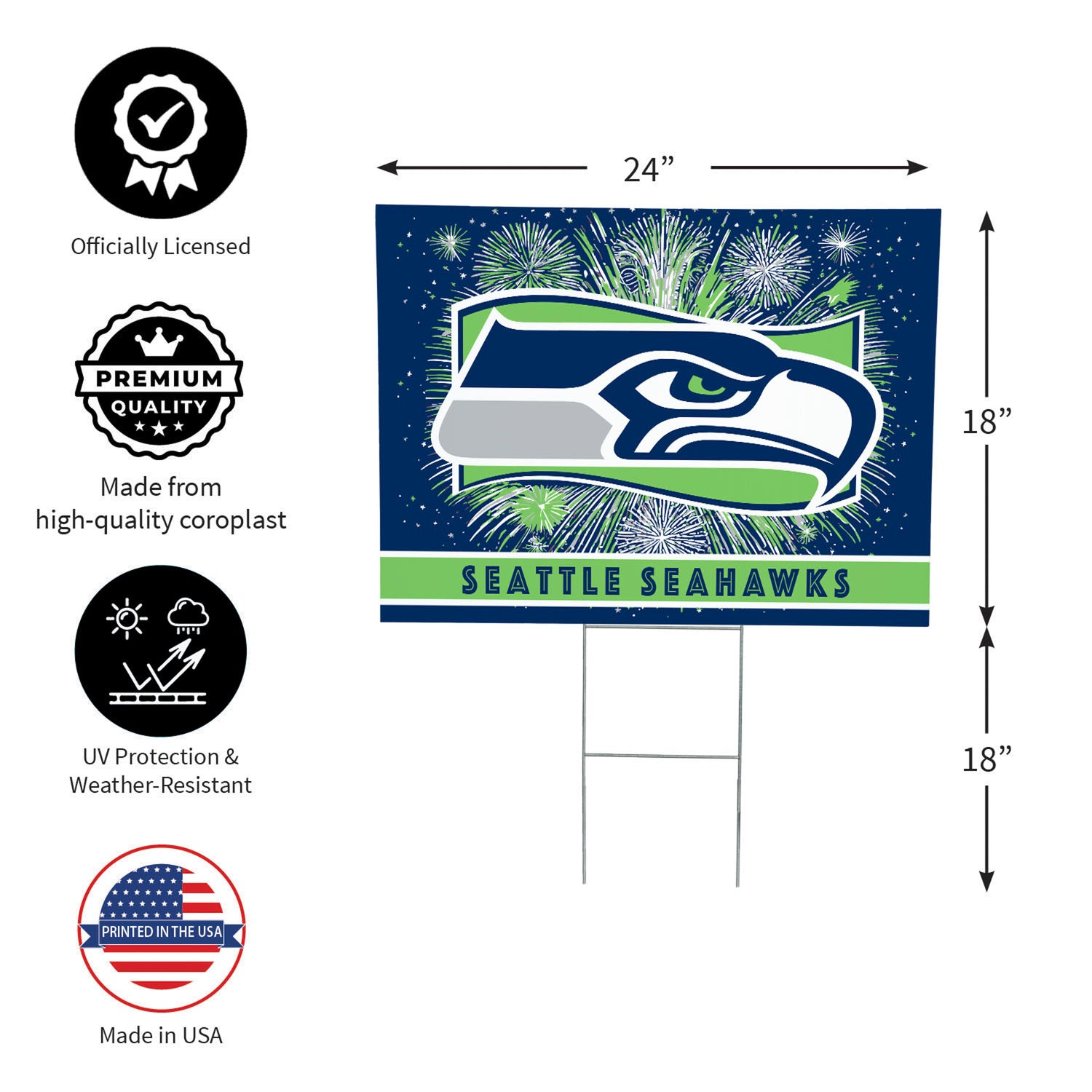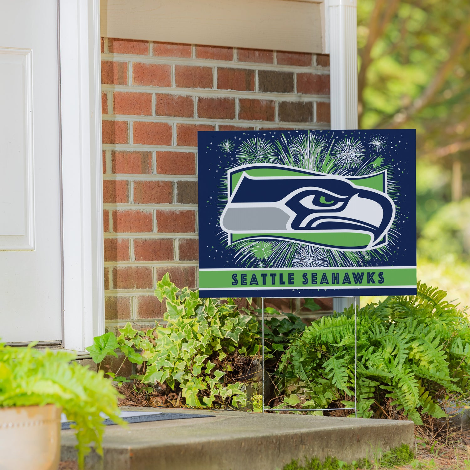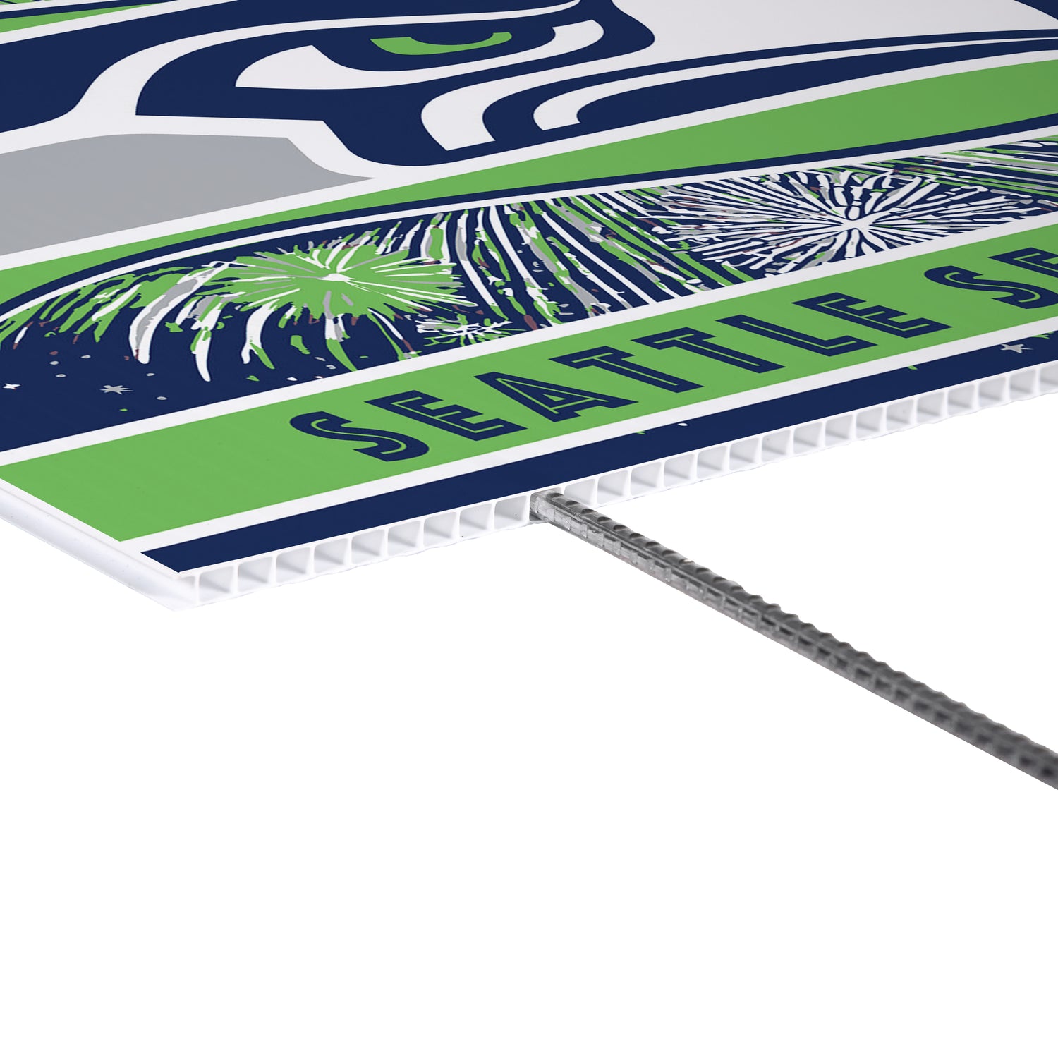 Showcase Washington team spirit every day with the Seattle Seahawks Patriotic Fans Welcome yard sign, an outdoor-safe garden sign designed for easy placement in lawns, planters, or garden beds. Printed in the USA with official team logos and colors, this coroplast build offers bold visibility without added weight, while the included stake pushes securely into place for quick, no-assembly setup. It’s simple to reposition for game day gatherings, curb appeal, or year-round display, and spot-clean care keeps graphics looking fresh season after season.