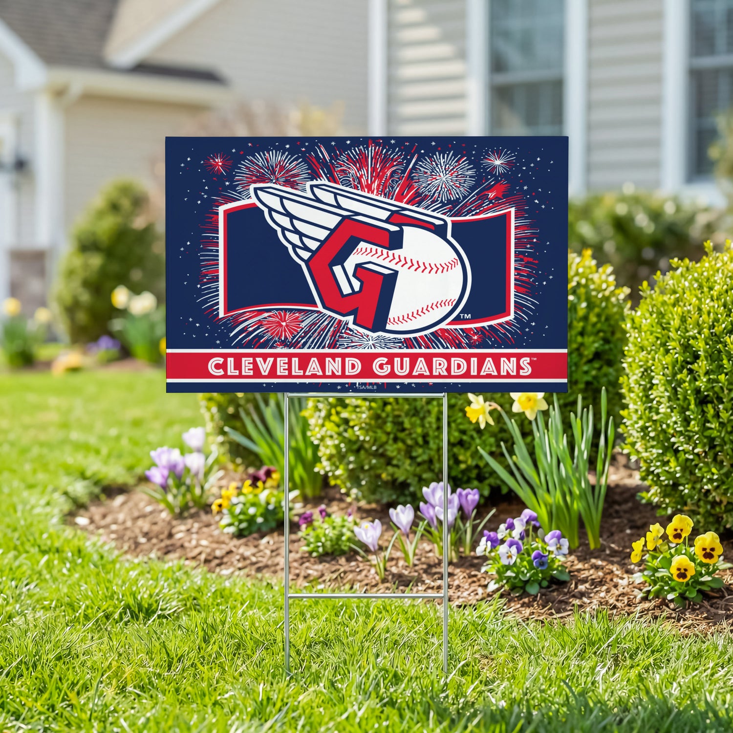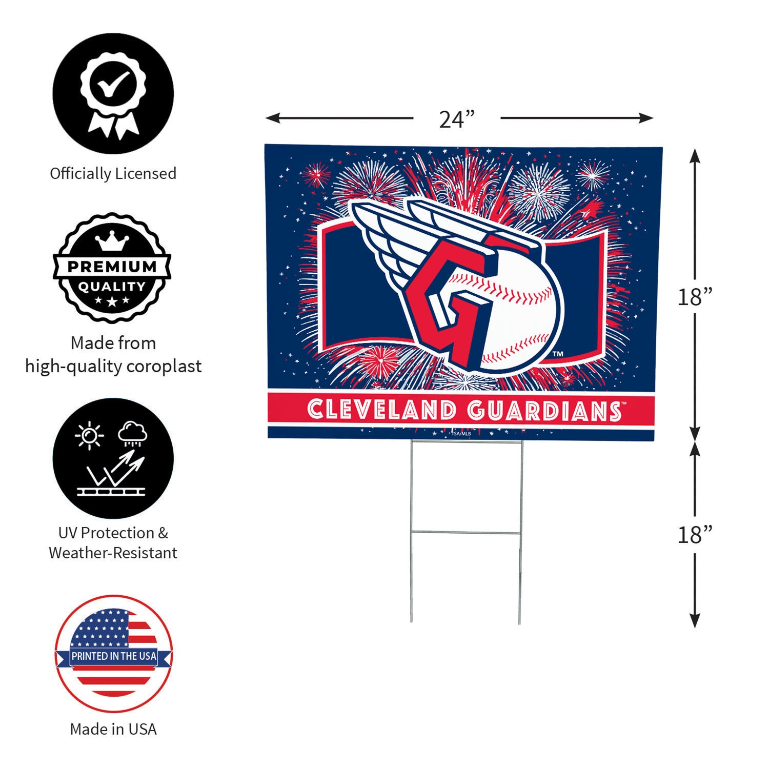 Celebrate Ohio pride and team spirit every day with the Cleveland Guardians Yard Sign. Designed for outdoor display, this multicolored garden decor features a bold, patriotic motif that resonates on game days and beyond, creating instant curb appeal without overpowering smaller spaces. The profile delivers clear visibility, while the lightweight construction in plastic with metal components makes placement and repositioning simple. With spot-clean care and everyday versatility, this outdoor sign provides an easy, high-impact way for fans to represent the Cleveland Guardians in front yards, planters, and entryways, supporting year-round MLB merchandising and gifting opportunities.
